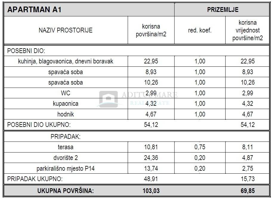 A1 prizemlje 69,85 m