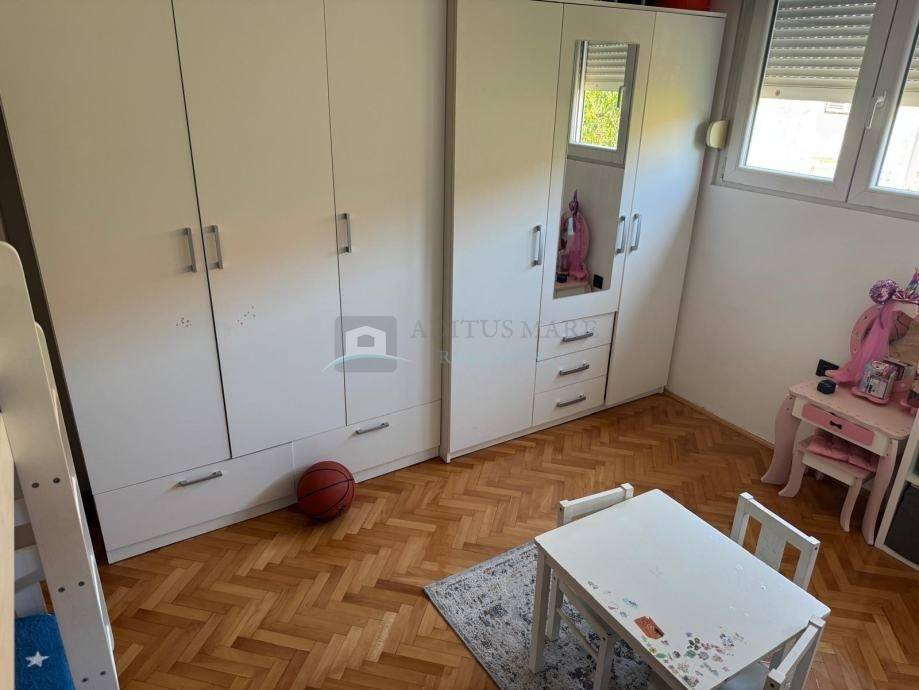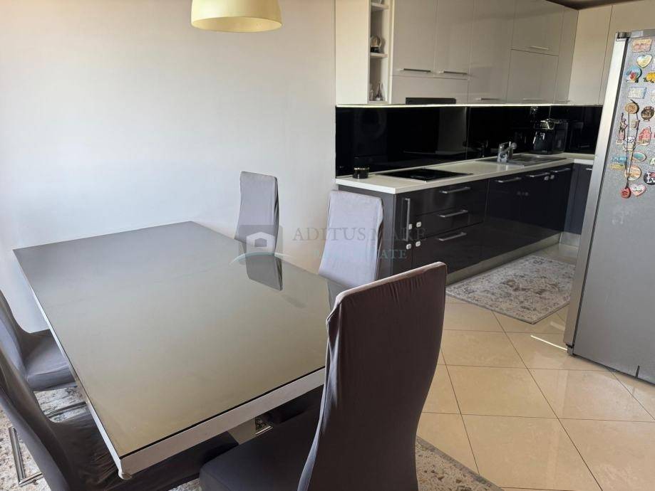 Stan ima funkcionalan raspored koji uključuje ulazni hodnik, zaseban WC, prostran i svijetao dnevni boravak, dvije udobne spavaće sobe te kuhinju s blagovaonicom. Posebnu vrijednost daje moderan smart home sustav koji omogućuje jednostavno upravljanje rasvjetom, klimatizacijom, videoportafonom, pametnom bravom i električnim roletama. Također, stan je opremljen optičkim internetom brzine 1 Gigabit, što ga čini izvrsnim izborom i za rad od kuće.