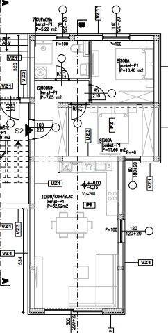 Pripadak stanu S2 je terasa površine 18m2x0,20=3,60m2 te dvorište 35,90x0,10=3,59m2 što daje ukupnu površinu od 77,54m2.