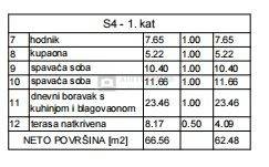 Stan ima ukupnu neto površinu 62,48 m, a sastoji se od: