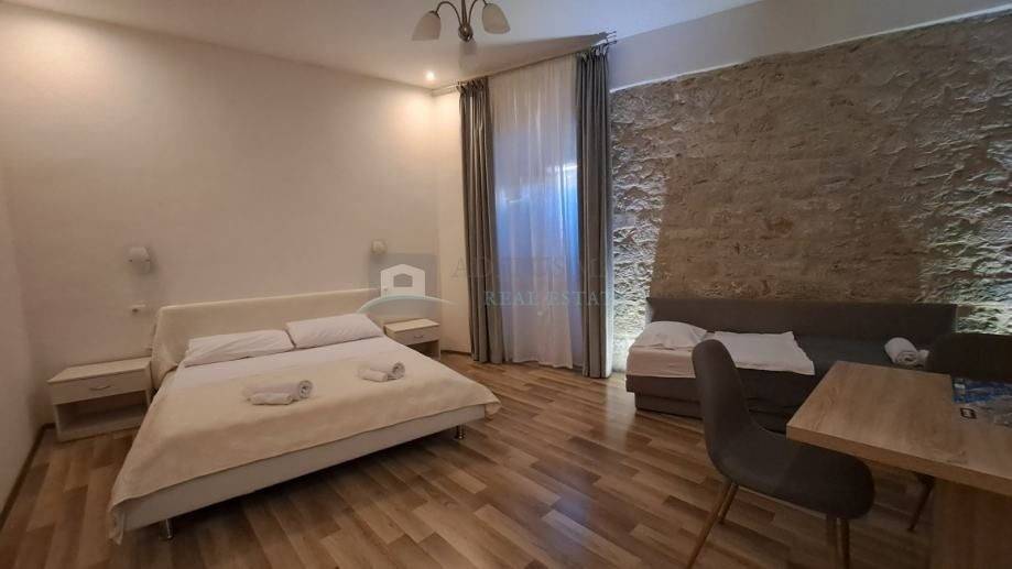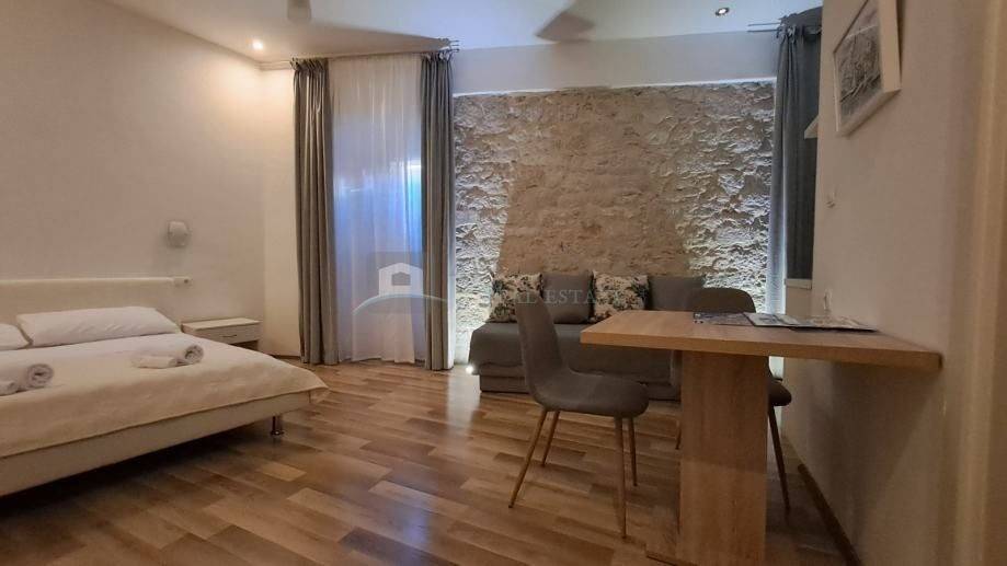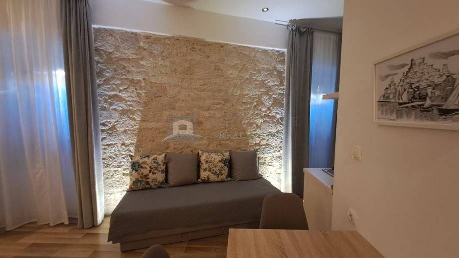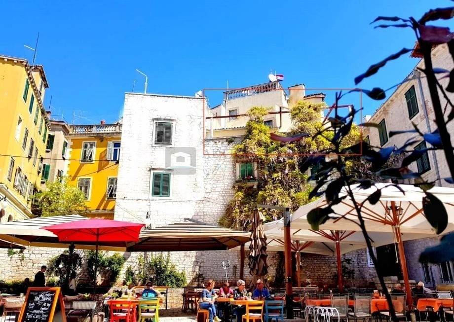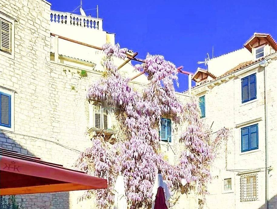 Jedinstvena prilika za kupnju ove elitne nekretnine u Palači Medulić čija je osunčana terasa ujedno i turistička atrakcija. Potpuno adaptiran veliki i miran stan s luksuznom terasom u povijesnoj jezgri grada Šibenika na samom trgu Medulić. Visoki stropovi, stropna i podna rasvjeta. Stan se prostire preko cijele etaže na jedinstvenoj lokaciji povijesne jezgre grada Šibenika i koji svojim povišenim položajem na samom trgu i svojom prekrasnom renesansnom cvjetnom terasom otvara zadivljujući pogled na okolinu, šarmantne srednjovjekovne građevine, sam trg i dio mora. Komforu stana pridonose 4 potpuno namještene i klimatizirane sobe s televizorima i 4 zasebna komforna i moderna kupatila u svakoj sobi. Stan je idealan za kupca koji cijeni prestižnu lokaciju povijesne jezgre i želi najbolju dugoročnu investiciju za sebe i obitelj. Plaža Banj je udaljena 12 min pješice, a svi sadržaji i povijesne znamenitosti su ispred samih ulaznih vrata. S obzirom na lokaciju i popularnost, ovaj objekt je u funkciji najma tijekom cijele godine. Podijeljen je na dva zasebna stana (trosobni i garsonjera s velikom terasom) i donosi vlasniku prihode. Malim zahvatom jednog graničnog zida, stan se može vratiti u prvobitno stanje tj. u vrlo komforan i luksuzan stan u jednoj cjelini. Gradski Parking dostupan u blizini uz mogućnost korištenja povlaštene stanarske karte.