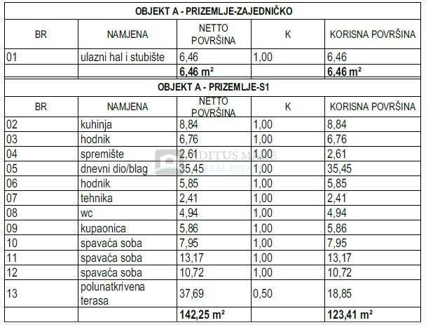 Stambena jedinica S1 nalazi se u prizemlju OBJEKTA A te se sastoji od kuhinje, hodnika, spremišta, wc-a, kupaonice, tri spavaće sobe, dnevnog prostora s blagovaonom i izlazom na prekrasnu polunatkrivenu terasu (18.85m).