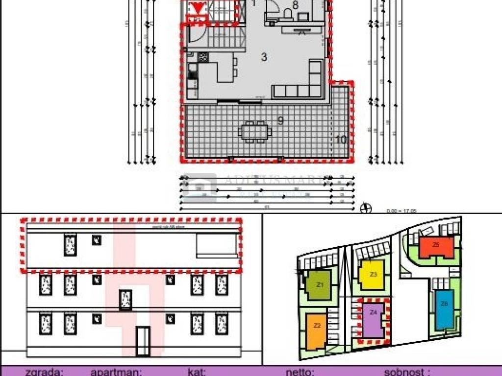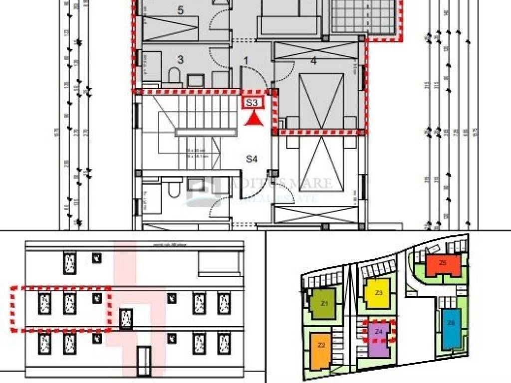 Zgrade su od mora i plaže udaljene svega 150/200m, većina stanova ima pogled na more.