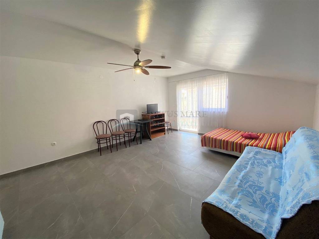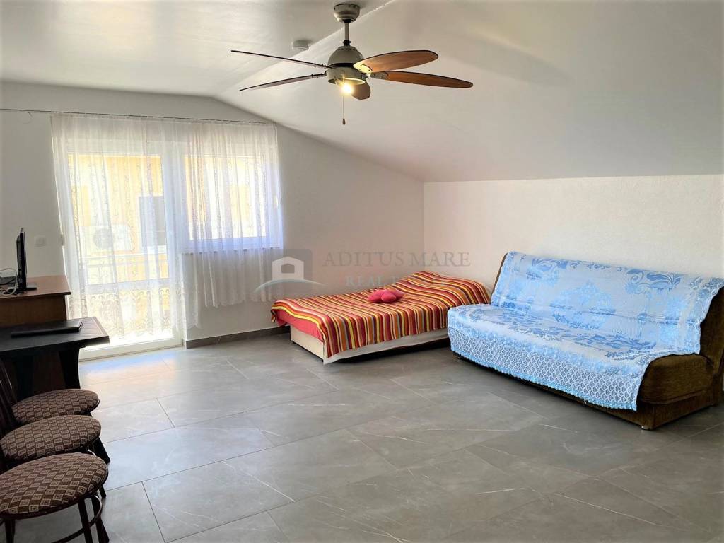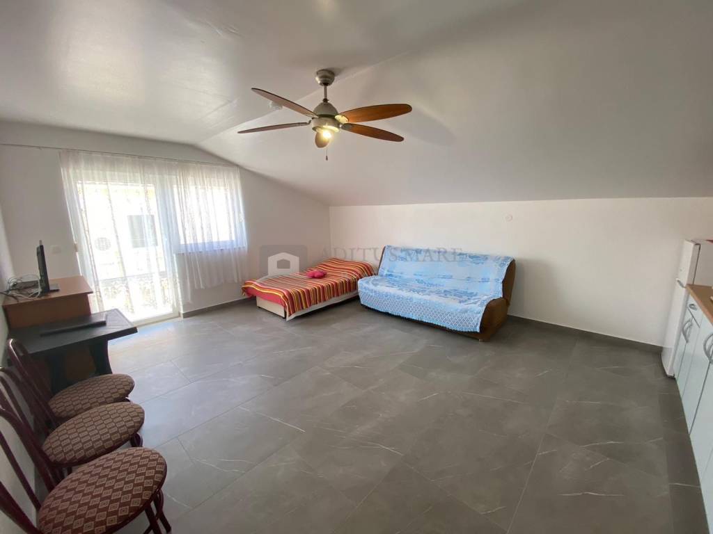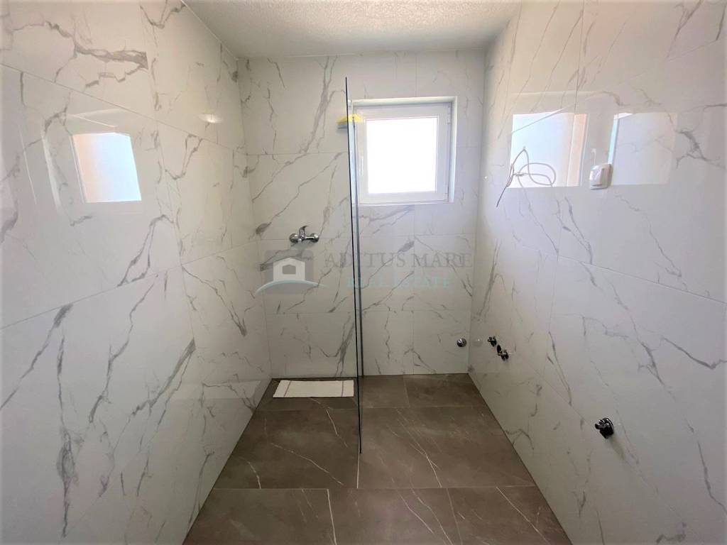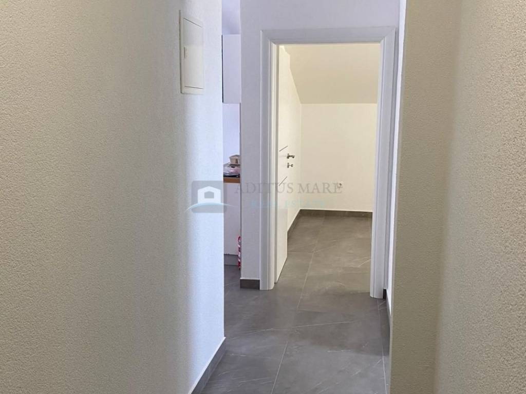 Stan se nalazi na drugom katu zgrade, pripada mu natkriveno parkirno mjesto te se sastoji od ulaza, hodnika, kupaone, spavaće sobe, dnevnog boravka sa kuhinjom i blagavaonom te natkrivenog blakona. Stan je zračnom linijom udaljen 600m od mora, nalazi se u mirnom predjelu Vodica.