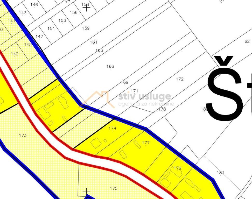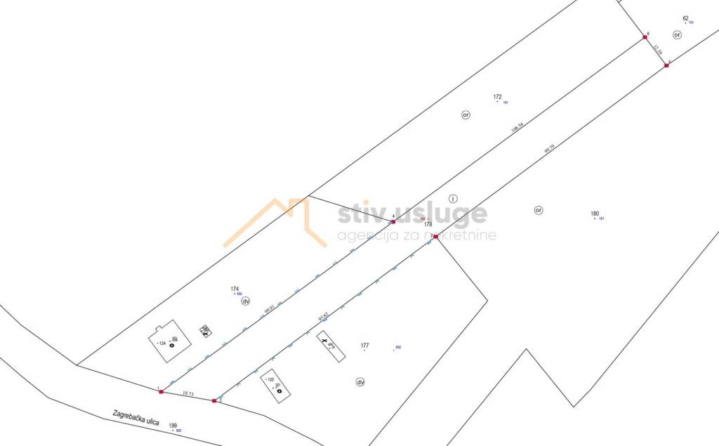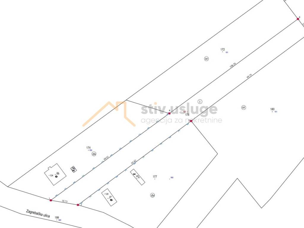 Parcela pravilnog, izduženog oblika, širine cca 14 m i dubine oko 200 m, ima osiguran direktan pristup s javne prometnice.