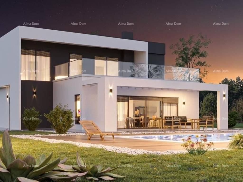Villas under construction for sale, Svetvinčenat, Juršići. One-story villa (net area 214 m2) with 4 bedrooms and 4 bathrooms, a spacious living room and a modern VENETA CUCINE kitchen, fully equipped with new ENZA HOME furniture and white goods.The villa has a garden of 1250 m2 and a swimming pool of 10 x 5 meters.3 parking spaces.Planned completion 06/2024.THE PRICE DOES NOT INCLUDE VAT 25%.For more information, please contact:Azra+ 385 91 611 5706+385 98 420 885azra@almadominvest.com