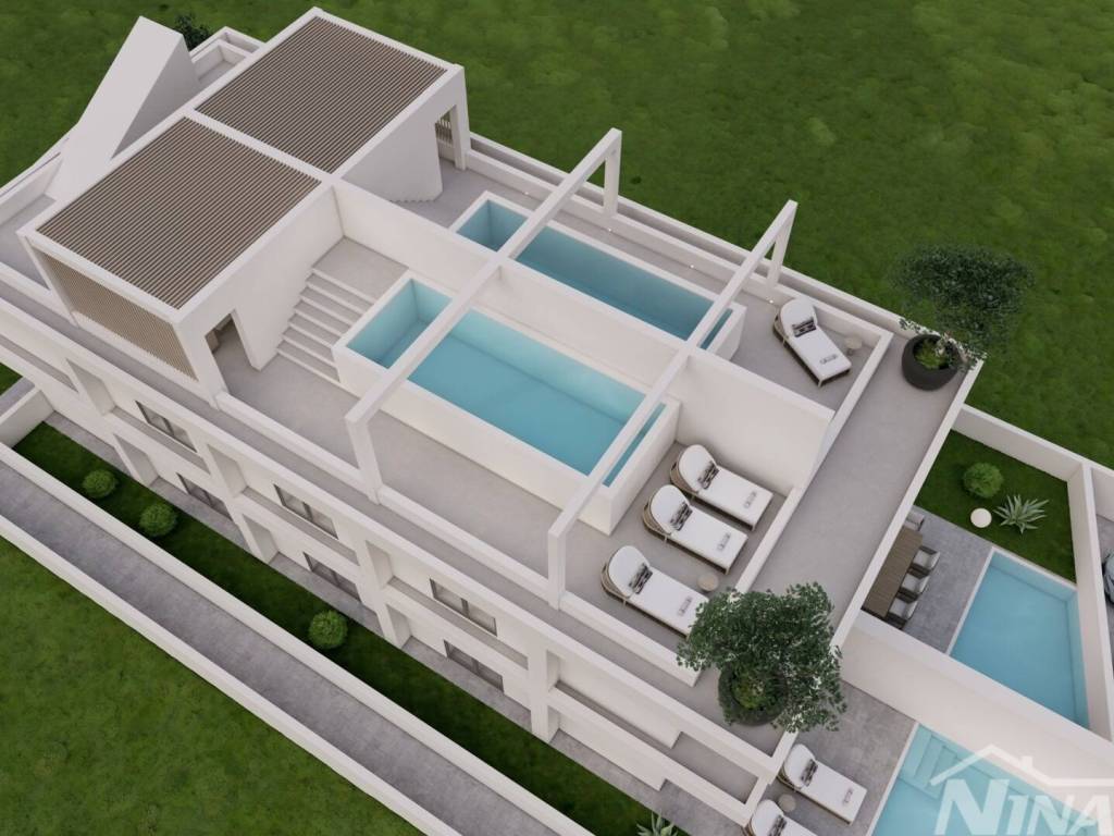 Ražanac Rtina apartmani u izgradnji smješteni na lijepoj i mirnoj lokaciji prvi red do mora. U ponudi su dva identična apartmana na prvom katu od kojih svaki ima kvadraturu od 113 m2 Sastoje se od ulaza, hodnika, dvije spavaće sobe, dvije kupaonice, veliki dnevni boravak s blagovaonicom i kuhinjom, izlaz na terasu, krovnu terasu s bazenom prostorom za druženje i roštilj. Ispred nekretnine smještena su parkirna mjesta. Pogled u zalazak sunca je ne opisiv. Kvalitetna gradnja, kao i unutarnja keramika i sanitarije. Kompletno klimatizirani, električna podna grijanja. Cijena svakog apartmna na katu iznosi 525 000 .