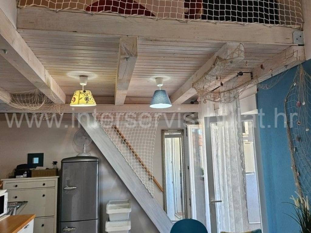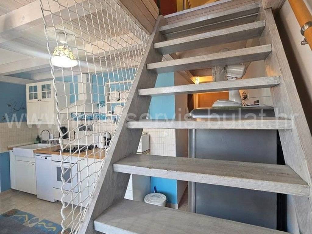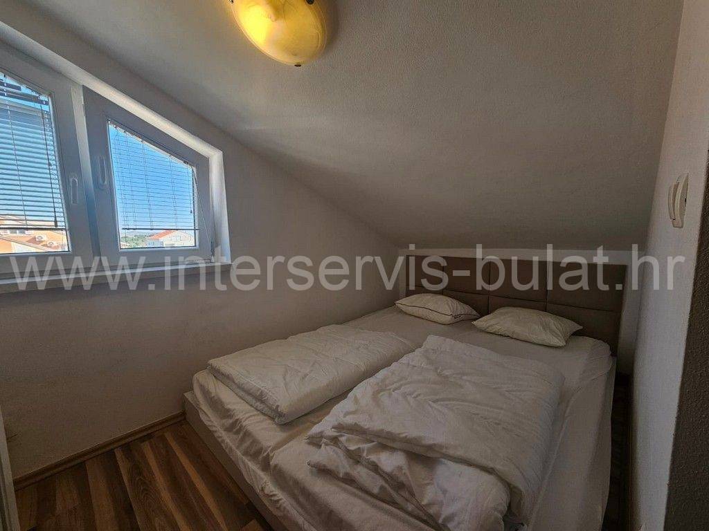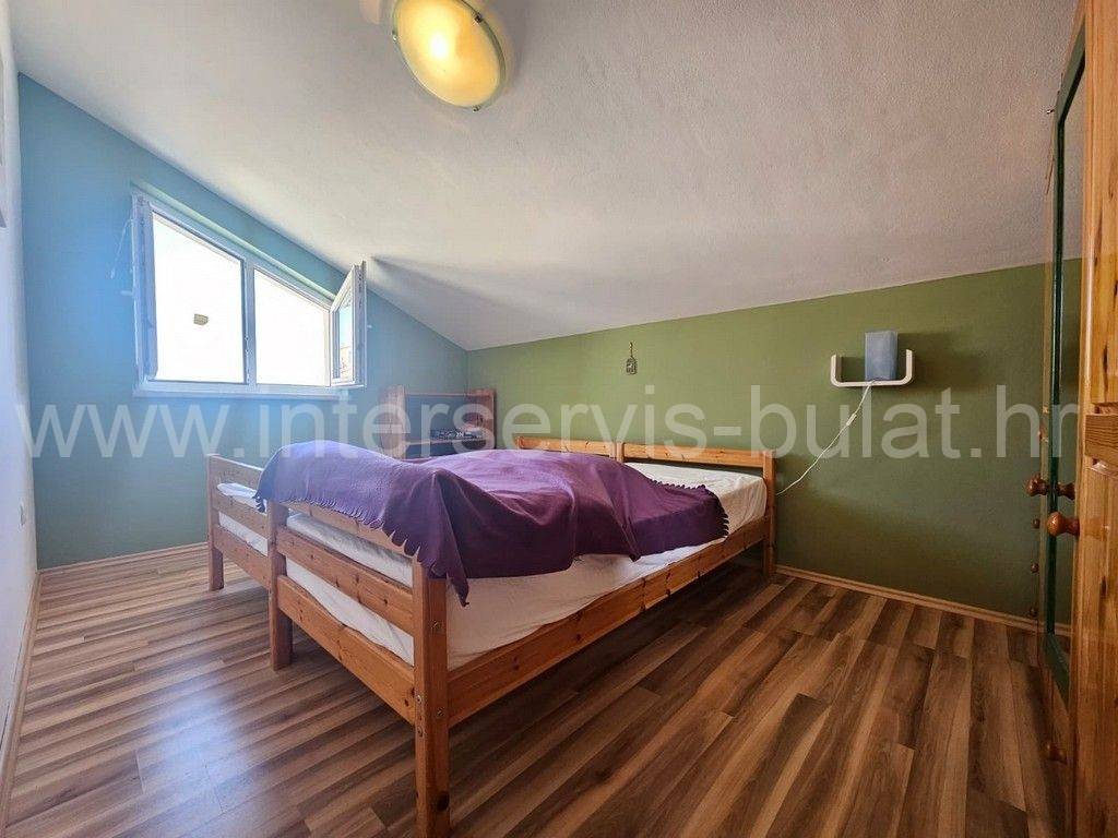 .::: Comfortable apartment with gallery:::. Residential building in a peaceful location in Vodice above the hotel Olympia and the main beach. The apartment has 74,84 sqm living space, it is located on the 2nd floor and consists of 2 bedrooms, an openkitchen, abathroom, balcony, a gallery of 22 sqm and a storage room in the cellar and one parking space. The apartment is habitable and equipped. Sea distance is about 800 m. Tour of the property is available by prior arrangement and appointment booking (two days in advance). Please specify ID number of the property when contacting us. Looking forward to your call.