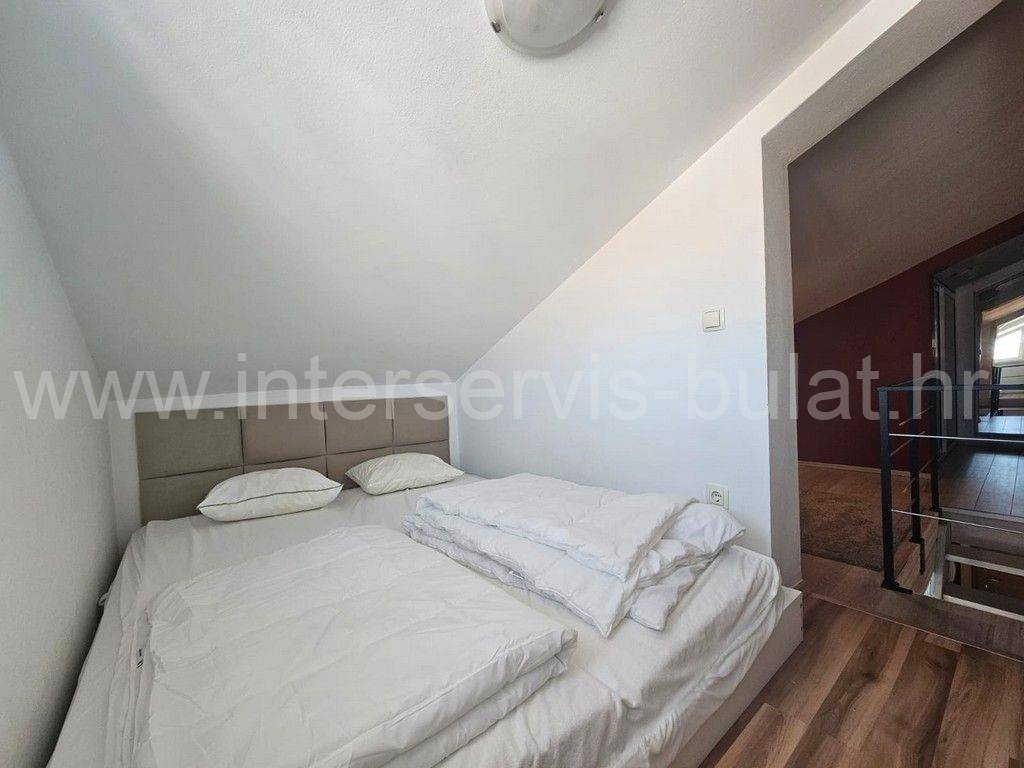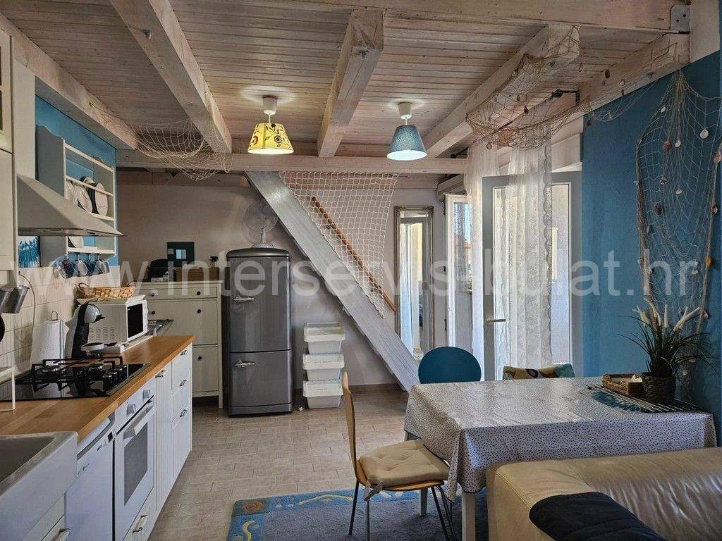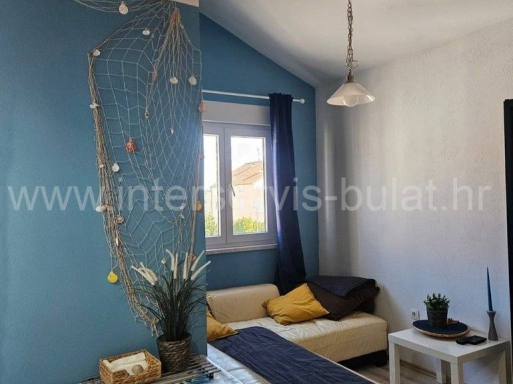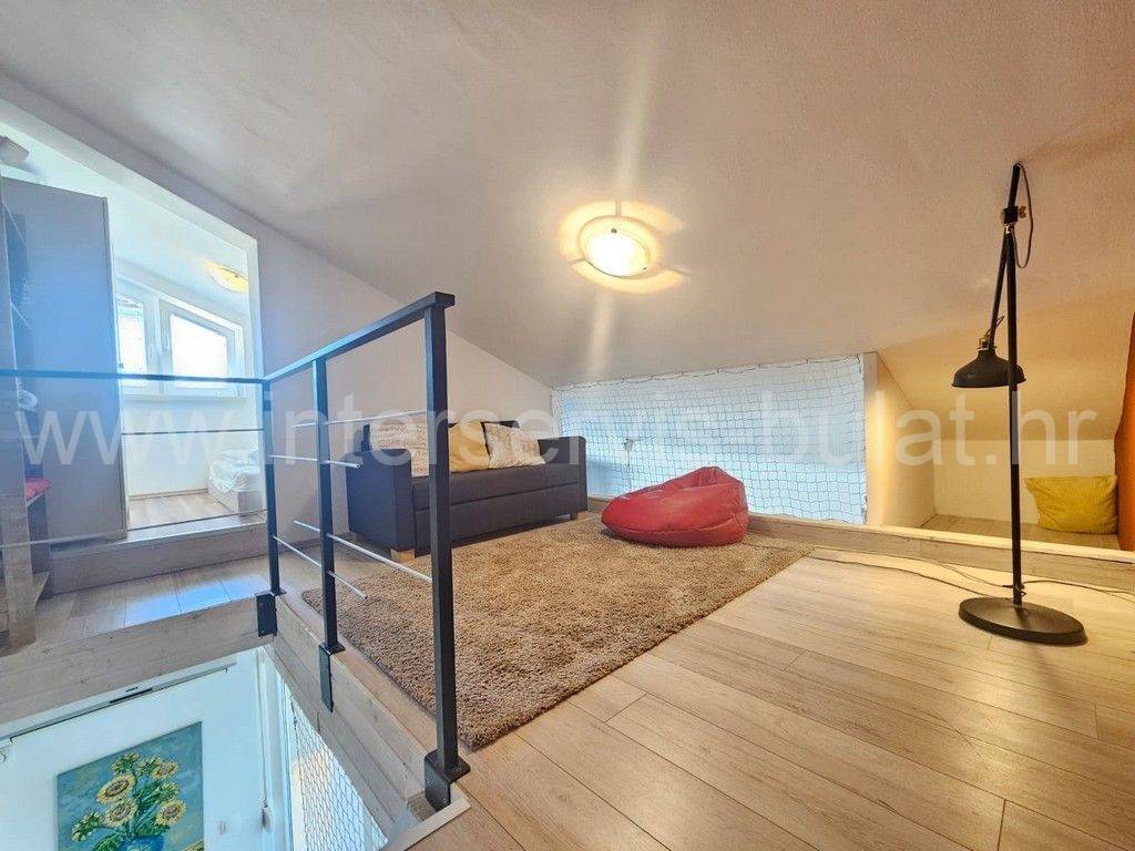 .::: Comfortable apartment with gallery:::. Residential building in a peaceful location in Vodice above the hotel Olympia and the main beach. The apartment has 74,84 sqm living space, it is located on the 2nd floor and consists of 2 bedrooms, an openkitchen, abathroom, balcony, a gallery of 22 sqm and a storage room in the cellar and one parking space. The apartment is habitable and equipped. Sea distance is about 800 m. Tour of the property is available by prior arrangement and appointment booking (two days in advance). Please specify ID number of the property when contacting us. Looking forward to your call.