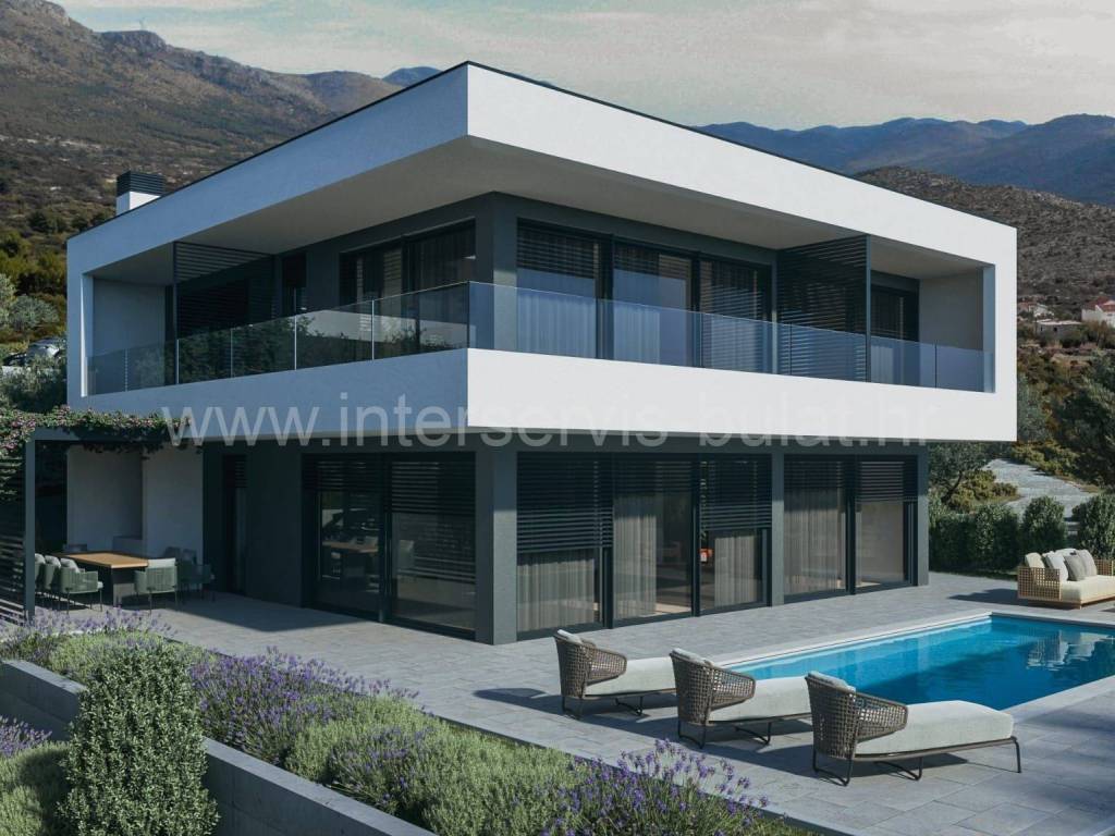 .::: Modern villa in shell construction state :::. In a quiet location in Grebaštica, on a gentle slope with beautiful sea view, a modern villa with swimming pool, two floors and 267 sqm of net area is for sale. The house is situated on a spacious plot of 560 sqm. On the ground floor there is a comfortable living room with kitchen, dining room, toilet, storage room. An internal staircase leads to the 1st floor, the layout of which consists of: hallway, storage room, three bedrooms with private bathrooms and terraces with beautiful view of the sea and the green surroundings. The villa is sold until the low roh-bau stage is completed - construction of the foundation, walls and flat roof of the villa with the basic installations of electricity, water and sewage installed. Water and electricity connection is included in the price. There is also the option of purchasing a completely finished building on a turnkey basis. 550m to the sea and beach. Tour of the property is available by prior arrangement and appointment booking (two days in advance). Please specify ID number of the property when contacting us. Looking forward to your call.