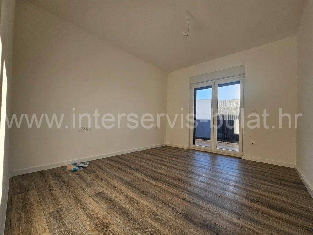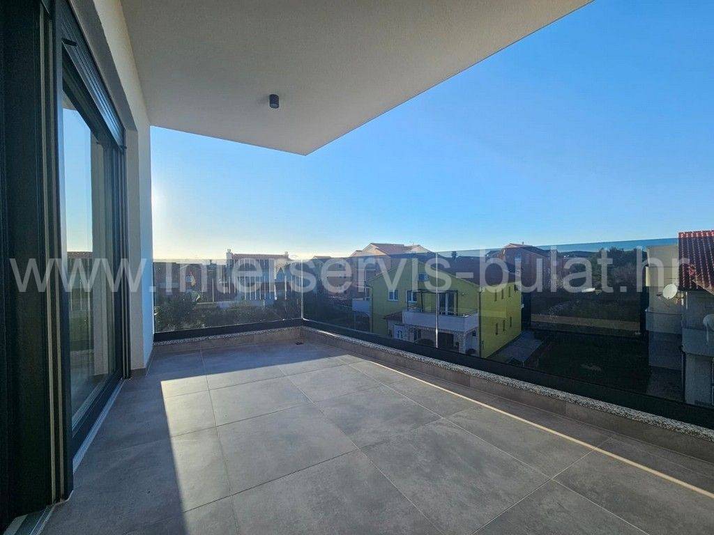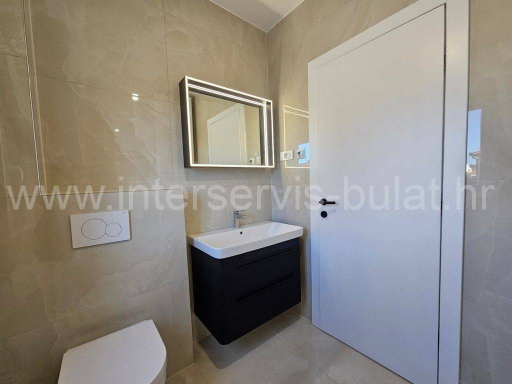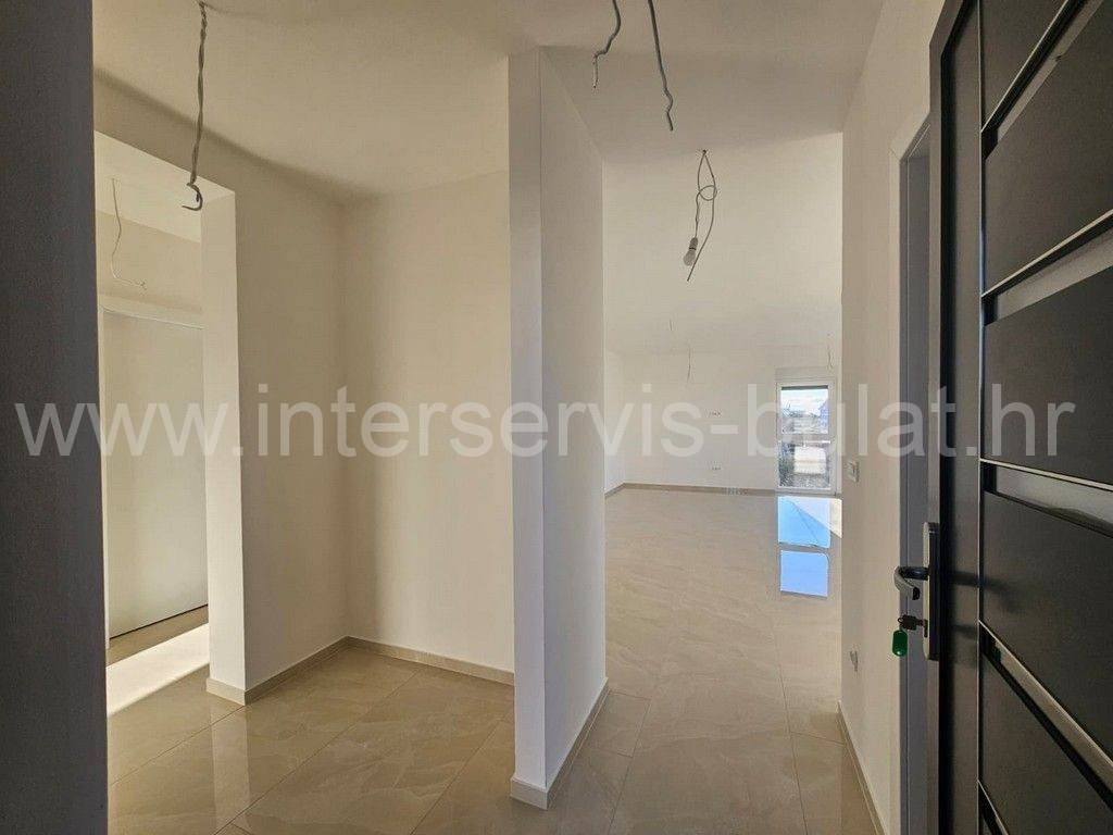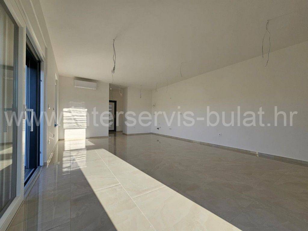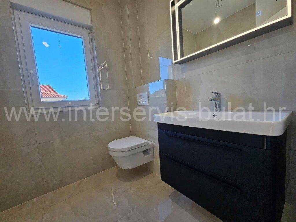 In a quieter location in Vodice, there is a building with three floors and one apartment on each floor. The apartment in question is located on the second floor of the building and has 92 sqm of usable area. It consists of a hallway, toilet, bathroom, kitchen with dining room and living room, two bedrooms and access to two terraces. The apartment is equipped with mosquito nets, electric blinds, air conditioning in all rooms, underfloor heating in the bathroom, kitchen and living room. The building is well built, and the floors and sanitary facilities are made of top-quality materials. The apartment also has two parking spaces.