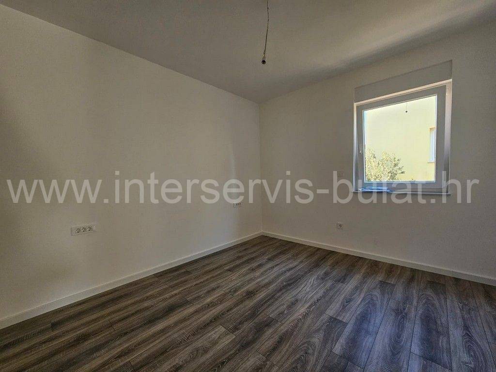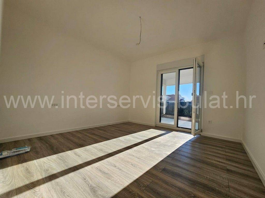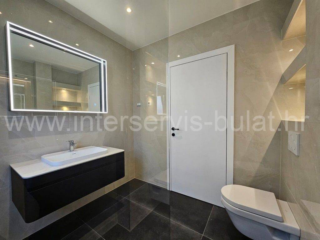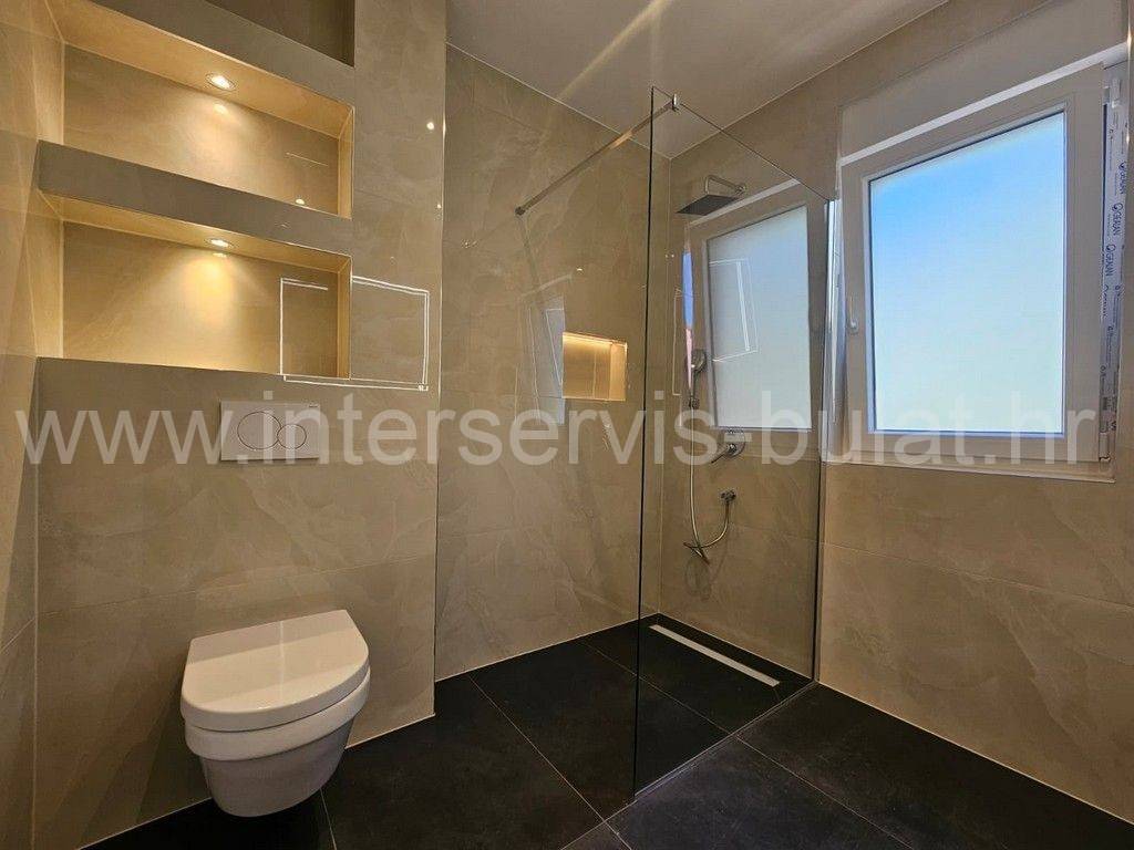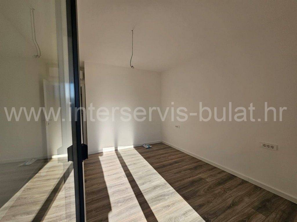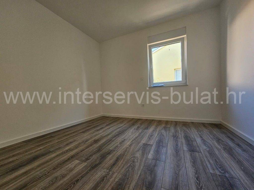 In a quiet location in Vodice, there is a building with three floors and one apartment on each floor. The apartment in question is located on the first floor of the building and has 86 sqm of usable area. It consists of a hallway, toilet, bathroom, kitchen with dining room and living room, two bedrooms and access to two terraces. The apartment is equipped with mosquito nets, electric blinds, air conditioning in all rooms, underfloor heating in the bathroom, kitchen and living room. The building is well built, and the floors and sanitary facilities are made of top-quality materials. The apartment also has a one parking space.