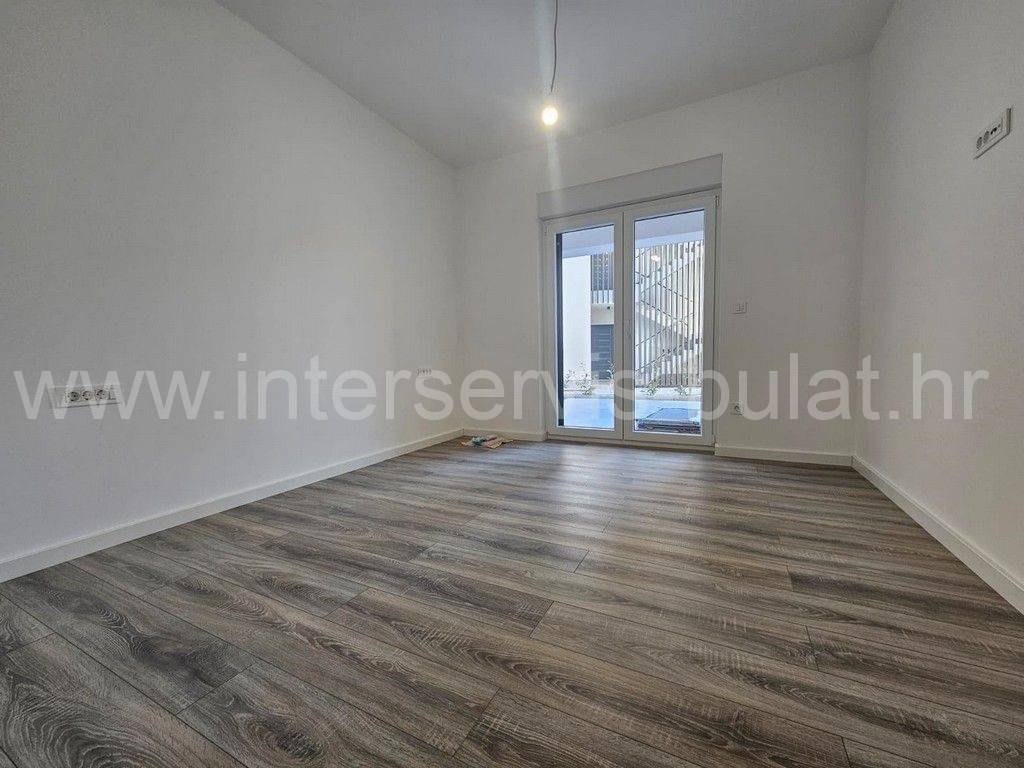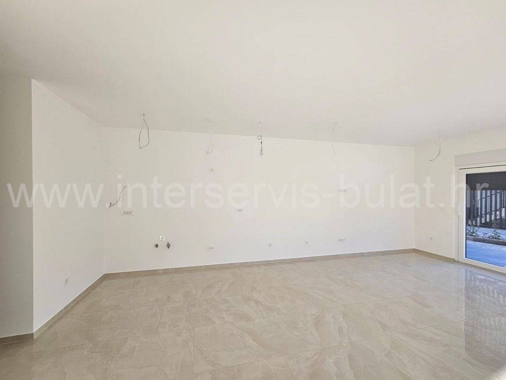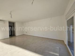 .::: Apartment in a new building in Vodice :::. In a quieter location in Vodice, there is a building with three floors and one apartment on each floor. The apartment in question is located on the ground floor of the building and has 108 sqm of usable area. It consists of a hallway, toilet, bathroom, kitchen with dining room and living room, two bedrooms and access to two terraces. The apartment is equipped with mosquito nets, electric blinds, air conditioning in all rooms, underfloor heating in the bathroom, kitchen and living room. The building is well built, and the floors and sanitary facilities are made of top-quality materials. The apartment also has a 122m2 garden and two parking spaces. The sea and the beach are about 570m away, and the center of Vodice is about 1km away. Tour of the property is available by prior arrangement and appointment booking (two days in advance). Please specify ID number of the property when contacting us. Looking forward to your call.