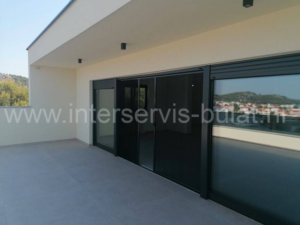 .::: Žaborić, luxurious apartment with impressive terrace :::. In a very desirable location in Žaborić there is a newly built duplex building only 170mto the sea and the beach. The luxurious apartment with a usable area of 132.35sqm is situated on the 2nd floor of the building and with its layout and arrangement provides ultimate comfort and luxury of living. The closed part of the apartment with 118.10sqm of living area offers: a spacious space for kitchen, dining room and living room, 3 bedrooms, 2 bathrooms and a hallway. The apartment has access to a stunning terrace of 47.40sqm with beautiful view of the sea and the town. It is equipped with security doors, air conditioning, top-quality joinery, mosquito nets, floor heating... The apartment has a parking space in front of the building. Tour of the property is available by prior arrangement and appointment booking (two days in advance). Please specify ID number of the property when contacting us. Looking forward to your call.