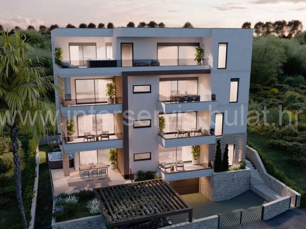 .::: Luxurious penthouse with sea view :::. In a beautiful, elevated location with fantastic view of the sea and Primošten, there is a residential building under construction. It consists of 7 two-bedroom residential units with beautiful terraces and a parking space in the garage or yard. Top-quality equipment includes: burglar-proof doors, floor heating, electric hoists, high-quality ceramics and sanitary ware, air conditioners, parquet and mosquito nets in the bedrooms, a charging station for electric cars... Completion of construction and possible occupancy are planned by the end of 2026. The center of the town is 2 km away, to the beach 1.5 km. Residential unit S7 123.70 sqmis a three-bedroom penthouse on the 3rd floor, with a spacious 43 sqm terrace with a jacuzzi and a 28 sqm garage space. Tour of the property is available by prior arrangement and appointment booking (two days in advance). Please specify ID number of the property when contacting us. Looking forward to your call.