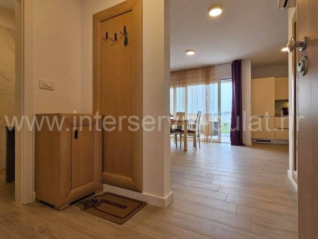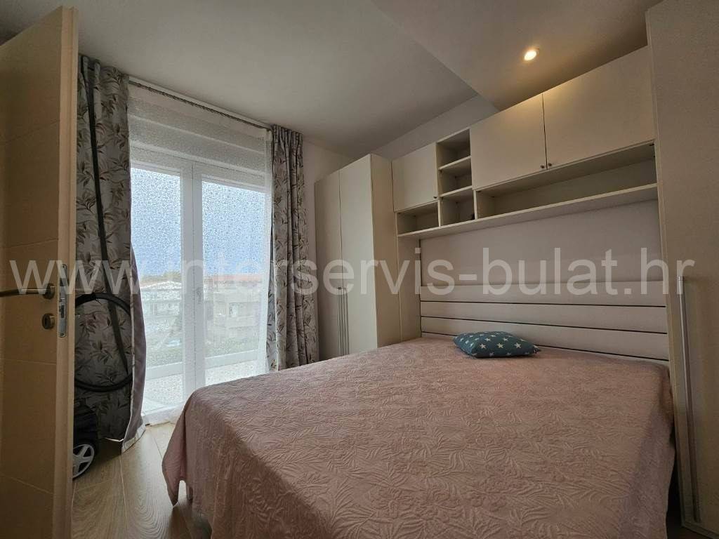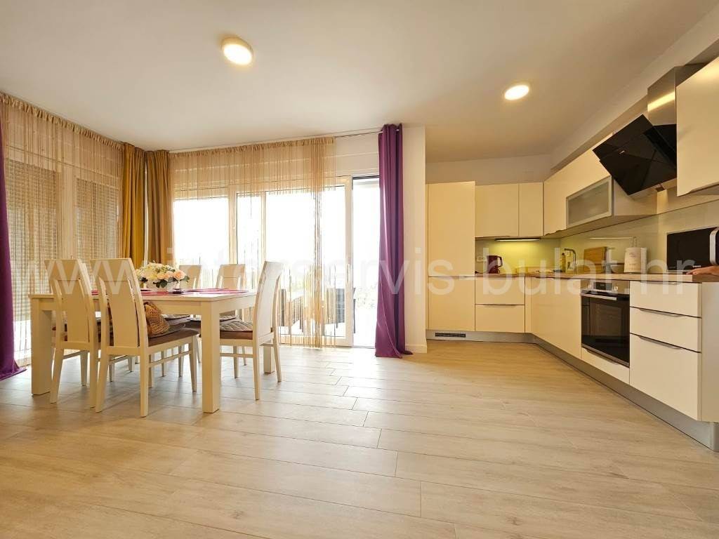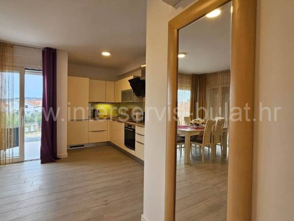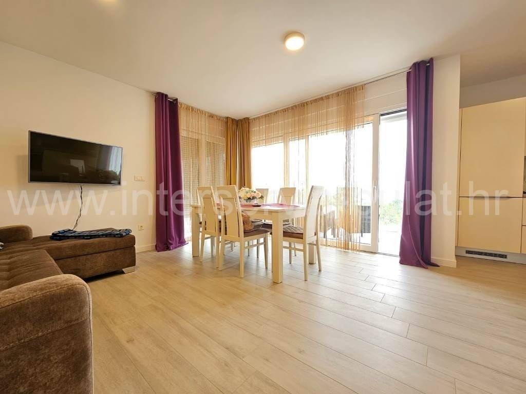 .::: Srima modern apartment close to the beach :::. In a quiet location in Srima, not far from the beach, a beautifully furnished apartment with 91.50sqm of usable area is for sale. It comes with a parking space of 12.50sqm and is situated on the 2nd floor of a residential building that was built in 2017. The layout of the apartment consists of: hallway, bathroom, toilet, 2 bedrooms, terrace of 12sqm, living room with kitchen and dining room with access to the comfortable terrace of 18sqm. The apartment is fully equipped and furnished. A beautiful pebble beach is only 120m away. Tour of the property is available by prior arrangement and appointment booking (two days in advance). Please specify ID number of the property when contacting us. Looking forward to your call.