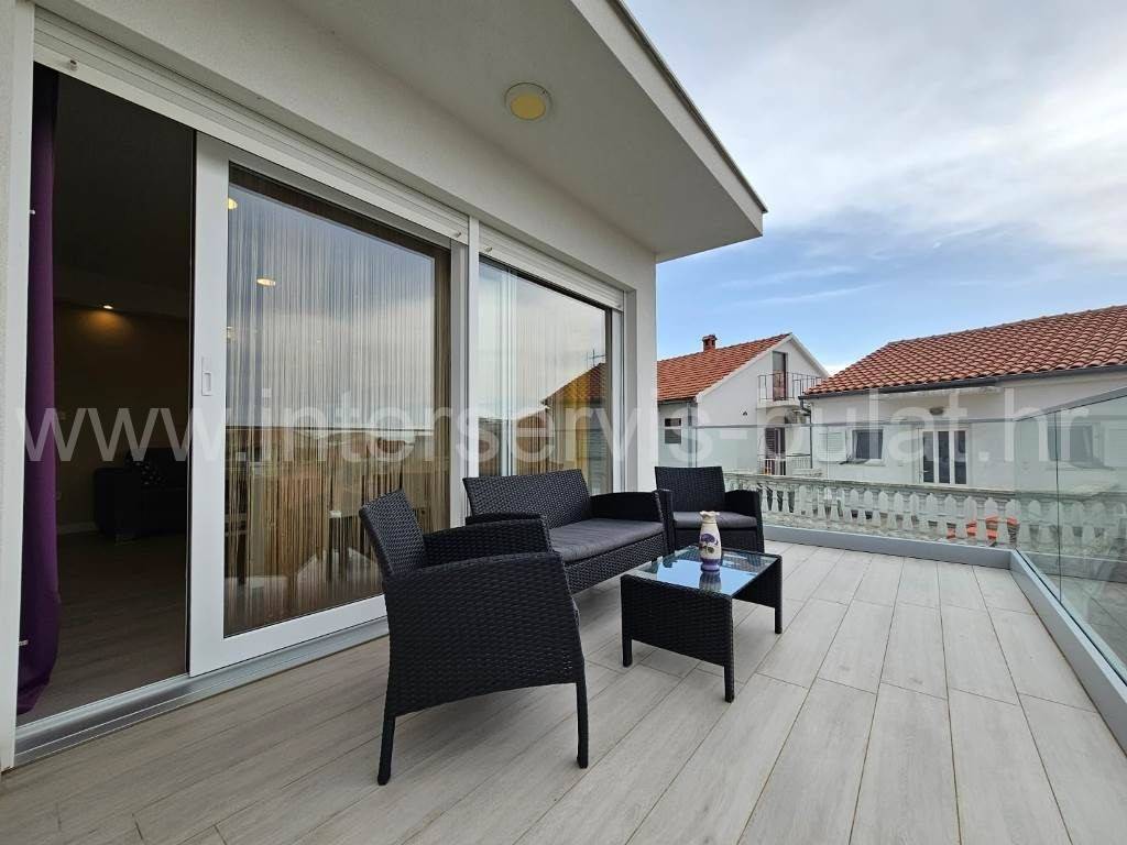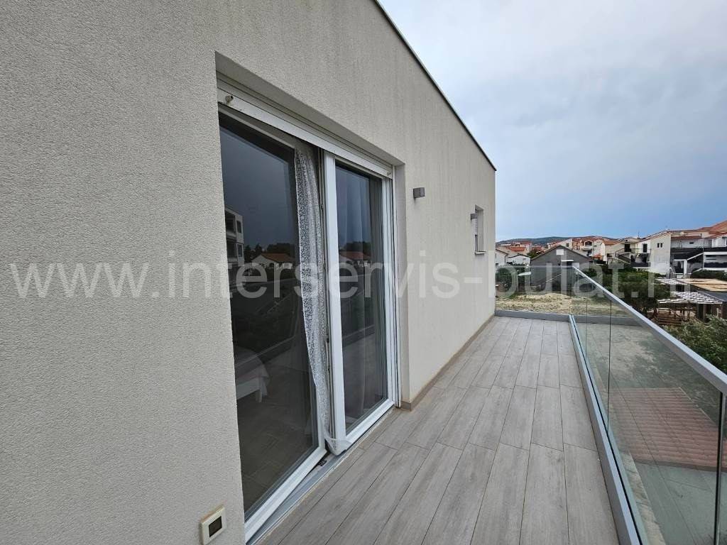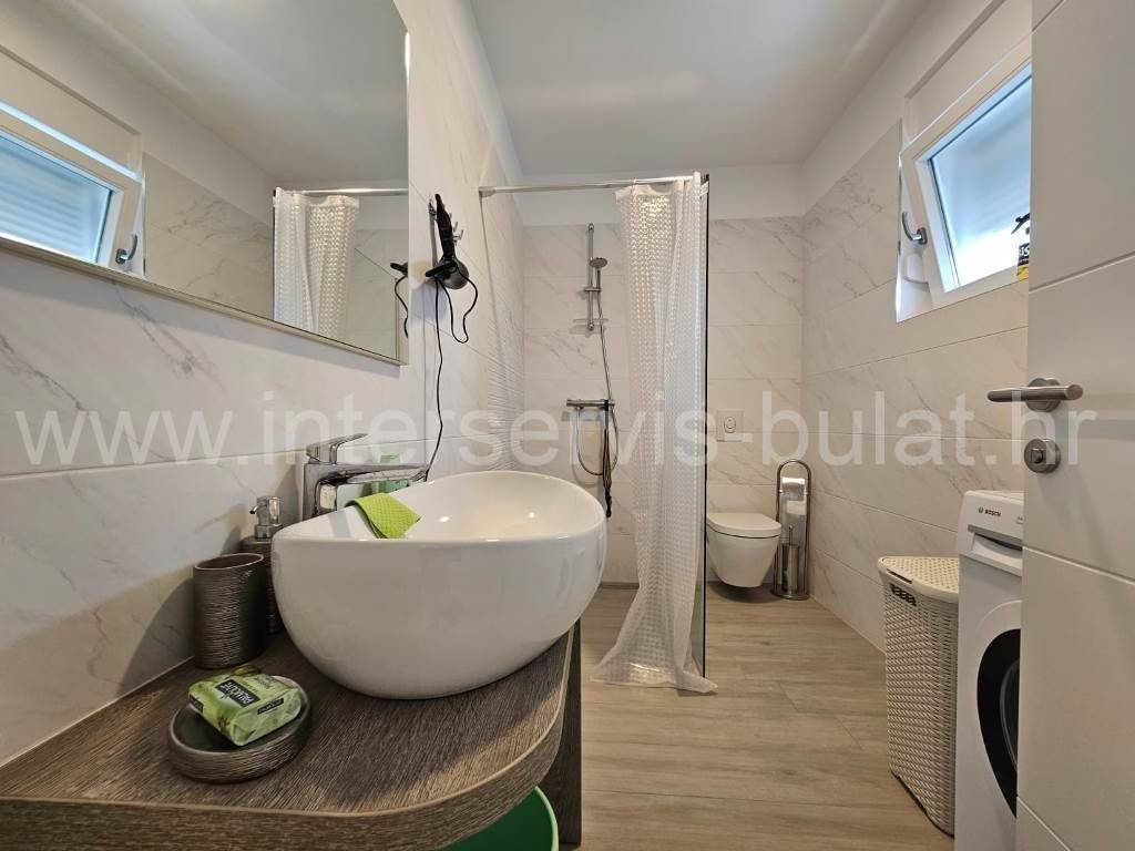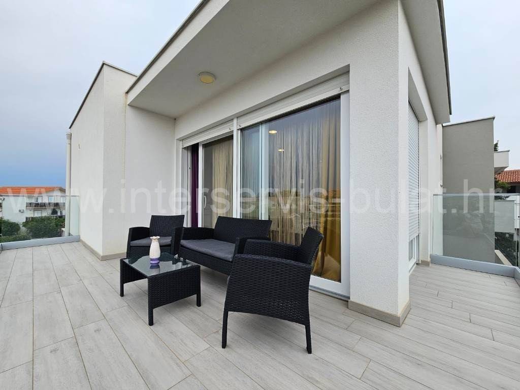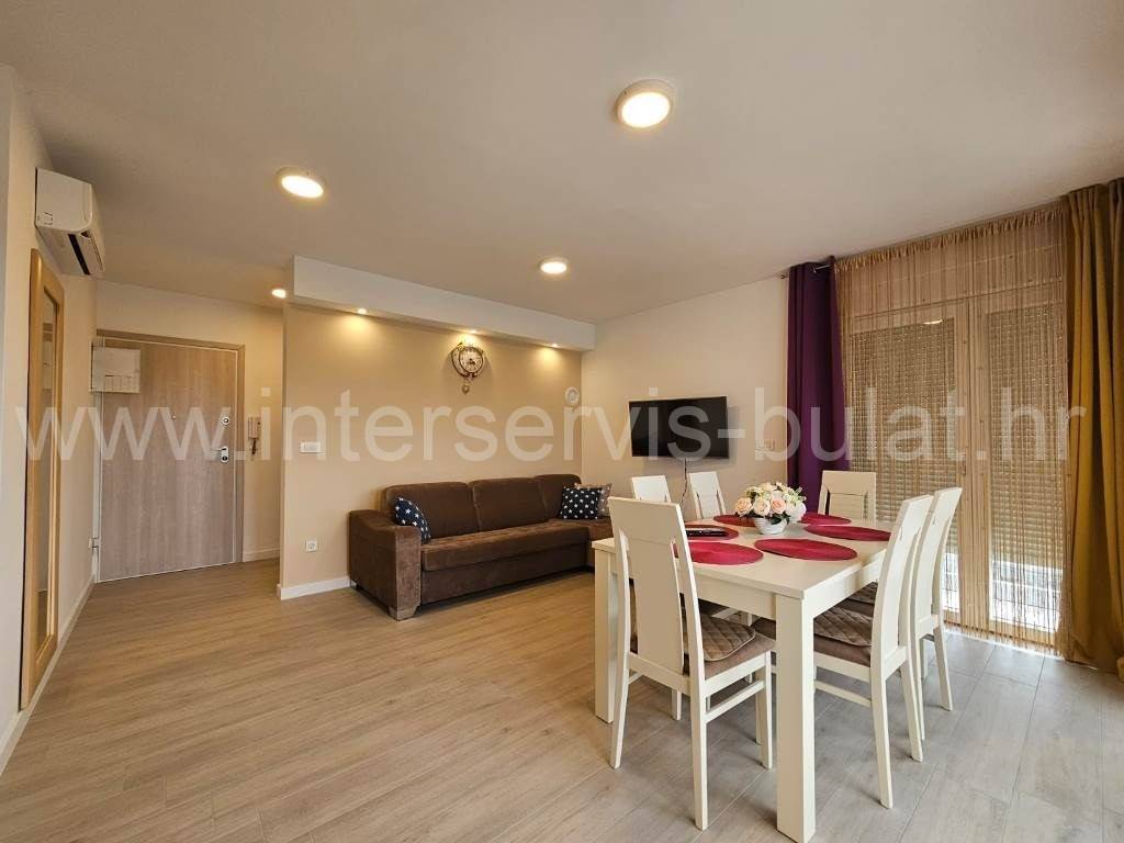 .::: Srima modern apartment close to the beach :::. In a quiet location in Srima, not far from the beach, a beautifully furnished apartment with 91.50sqm of usable area is for sale. It comes with a parking space of 12.50sqm and is situated on the 2nd floor of a residential building that was built in 2017. The layout of the apartment consists of: hallway, bathroom, toilet, 2 bedrooms, terrace of 12sqm, living room with kitchen and dining room with access to the comfortable terrace of 18sqm. The apartment is fully equipped and furnished. A beautiful pebble beach is only 120m away. Tour of the property is available by prior arrangement and appointment booking (two days in advance). Please specify ID number of the property when contacting us. Looking forward to your call.