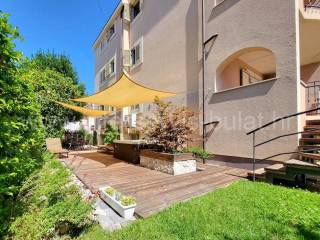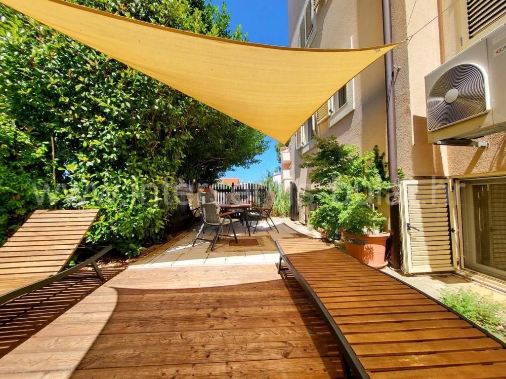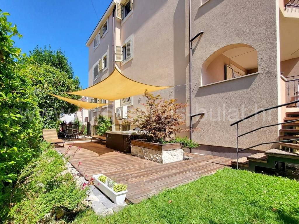 The apartment is in top condition, fully furnished, decorated and ready to move in. The yard is maintained and is adorned with wonderful greenery. Another additional parking space is available. Only 150m to the beach.