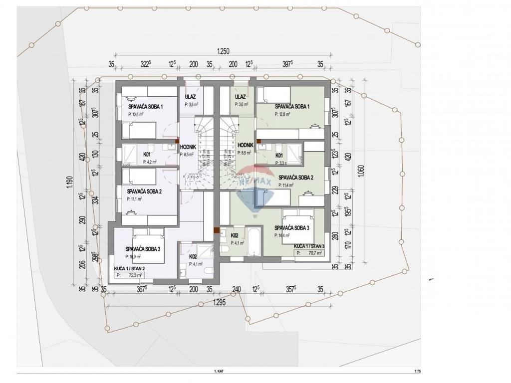 OPATIJA, PAVLOVAC - 3-bedroom apartment with a roof terrace and a sea view. It is located in a new building (2024) with only 3 apartments. Each apartment has its own entrance, which ensures peace and privacy for the future owners. The building is in an excellent location, in a dead-end street. , near all facilities, only 5 minutes by car to the sea, the beach and the Lungo mare promenade. All apartments are south-facing, sunny and bright with a view of the sea. Apartment 3 is on two floors with an exit to the roof terrace (everything is interconnected by an internal staircase) extends through the 1st and 2nd floor, surface area 147.8 m2, and consists of: - lower floor: 3 bedrooms, 2 bathrooms, entrance and hallway - upper floor: living room with kitchen and dining room with access to the balcony , toilet and utility room - third floor: roof terrace 23.5 m2 with a panoramic view of the sea. The heating and cooling system in the apartment is via a heat pump (convectors). The apartment has 2 parking spaces. The listed price refers to a completely finished apartment on a turnkey basis in hand (with sanitary facilities) without furniture. VAT is included in the price, the buyer is exempt from paying real estate sales tax. In the case of a purchase from a company registered in Croatia, a full VAT refund is possible after the sale. Planned completion of the works and moving in is at the end of 2024.
