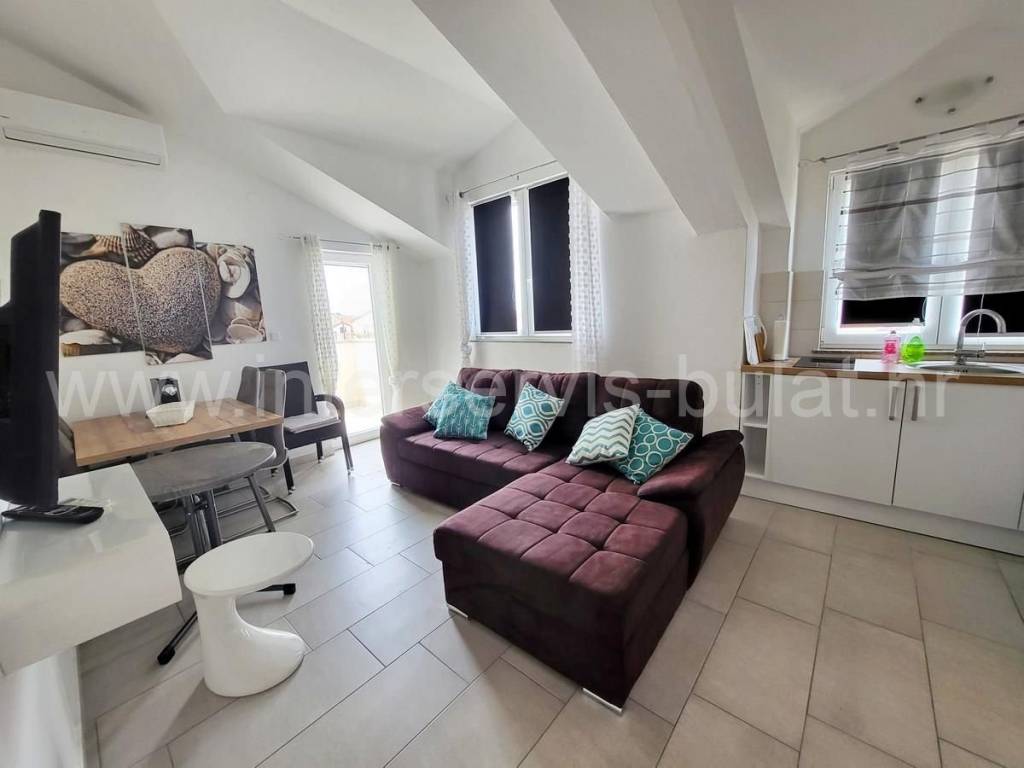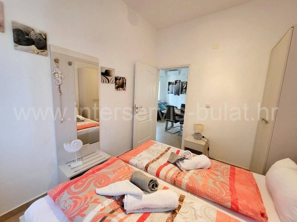.:::Ideal for tourism :::. House with a living area of 490sqm is located on a plot of 415sqm, 200m to the sea and ideal for tourism. The house has seven apartments and a habitable basement of 130sqm. It is possible to separate the apartments, then it is necessary to separate electricity and water connections, and currently there are two water connections and one for electricity. The basement of 130m2 consists of several rooms. On the ground floor there is a one bedroom apartment with a separate entrance of 36 m2, in the western part there is another two bedroom apartment of 84m2. Internal stairs lead to the first and second floor. On the first floor there is a two bedroom apartment of 84 m2 with a balcony and a one bedroom apartment of 36m2 also with a balcony. On the second floor are three one-bedroom apartments of 34.40 and 34 m2, with balconies. The house is decorated and habitable. The balcony offers a beautiful sea view. The tour of the property is available by prior arrangement and appointment booking (two days in advance). Please specify ID number of the property when contacting us. Looking forward to your call.