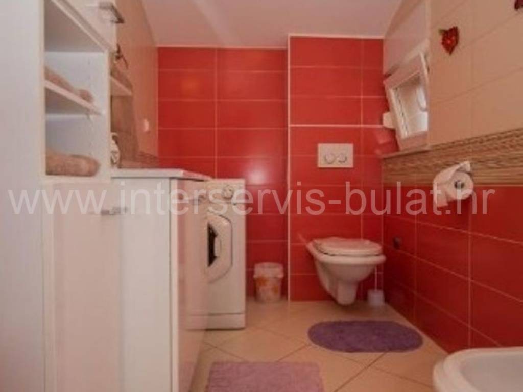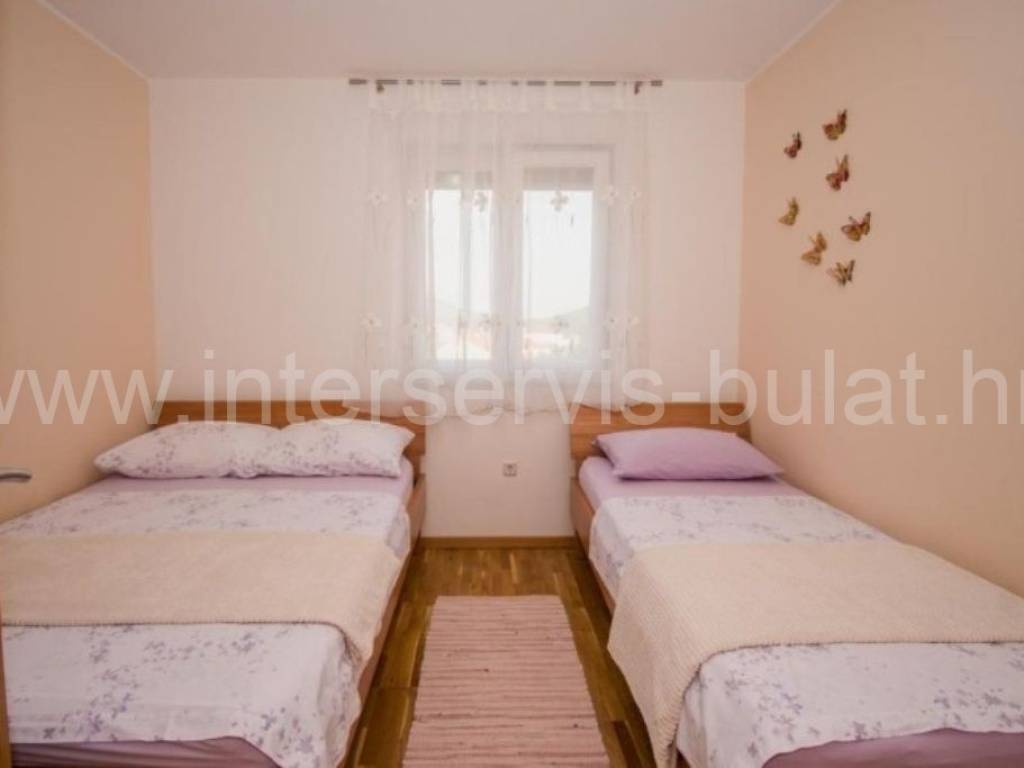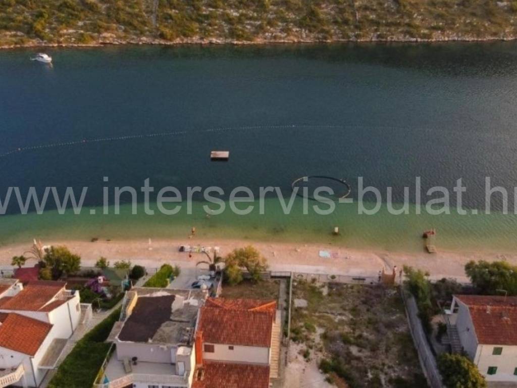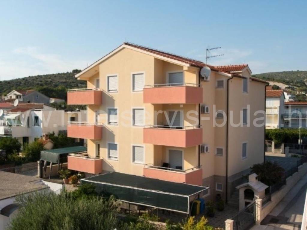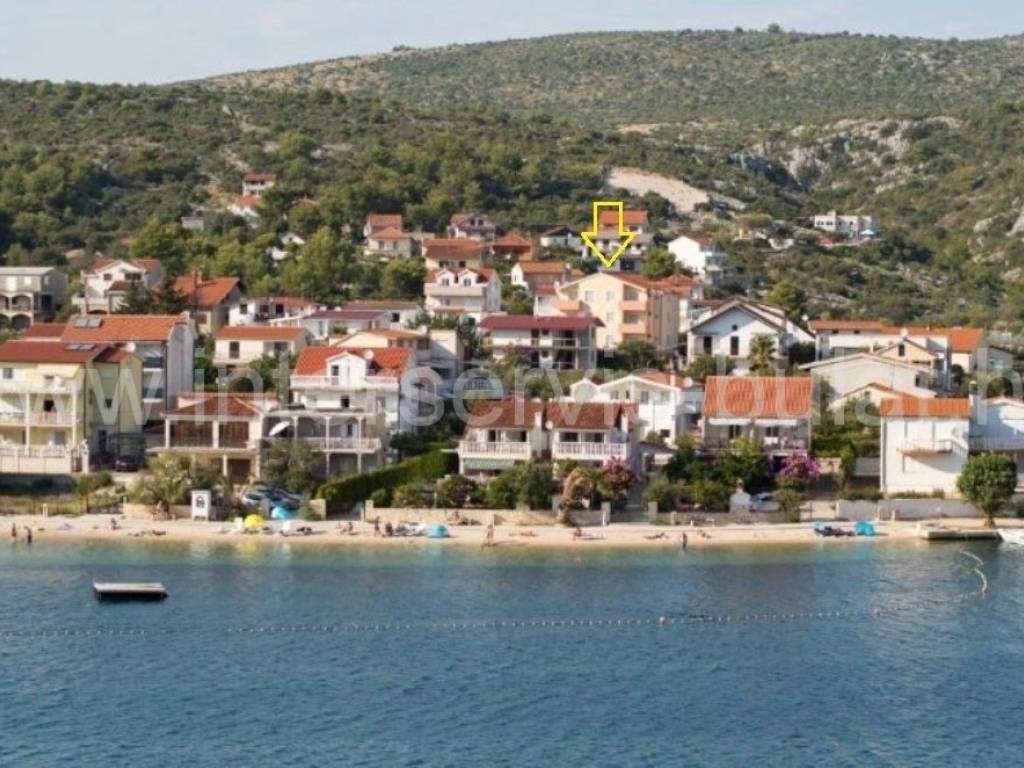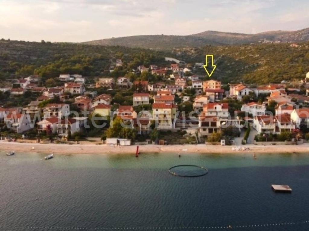 .::: Furnished apartment house near the sea :::. Semi-detached house located at the coast in Rogoznica, in the third row from the beach, in a peaceful settlement. The house has 219sqm living area and a plot of 273sqm. It was built in 2010 and is fully decorated, furnished and habitable. On the ground floor there is a one bedroom apartment of 38sqm with own garden. On the other floors there are each two bedroom apartments of 61sqm living area with nice terraces and stunning sea view. The house has several parking places and a garden. Especially good location only 80m to the beach.