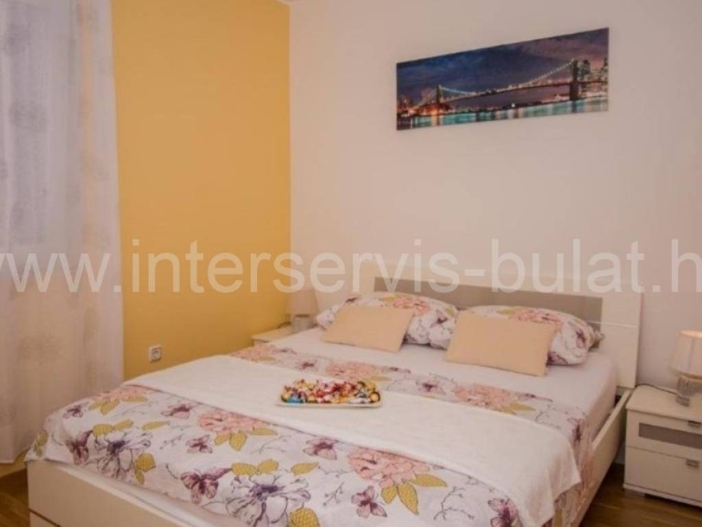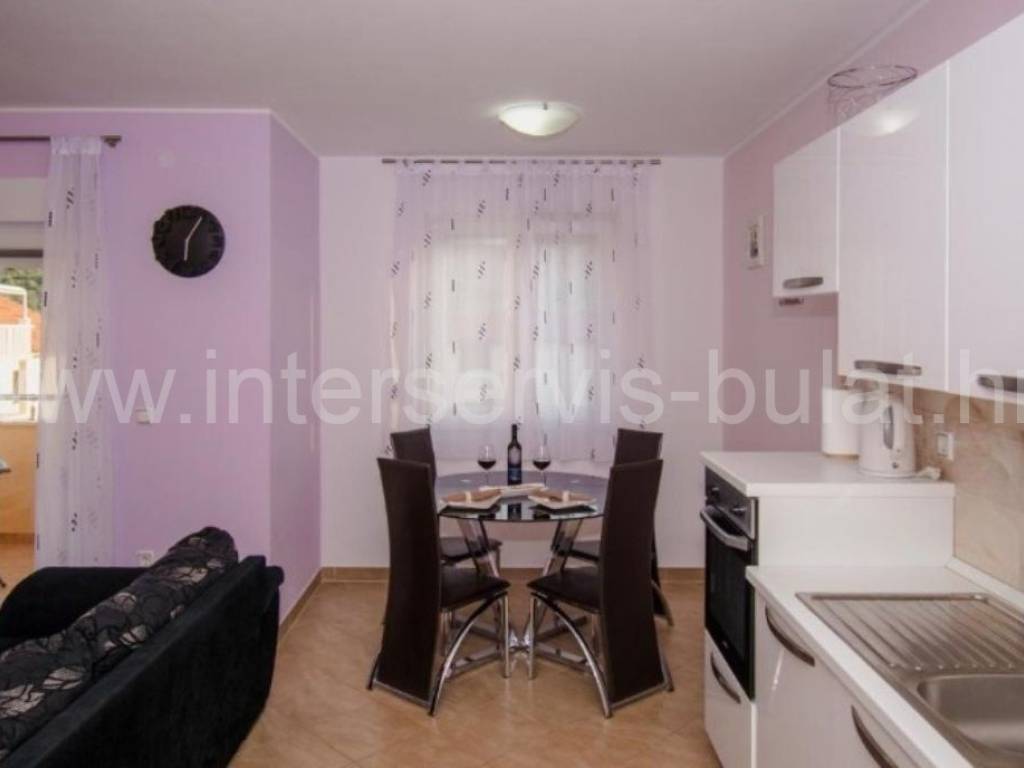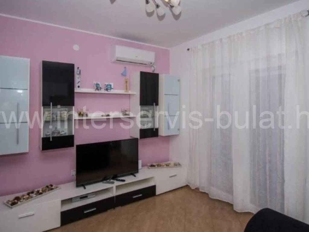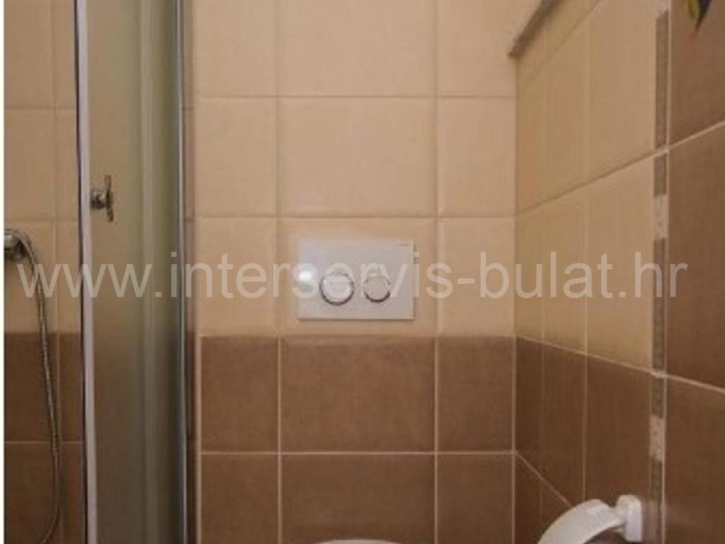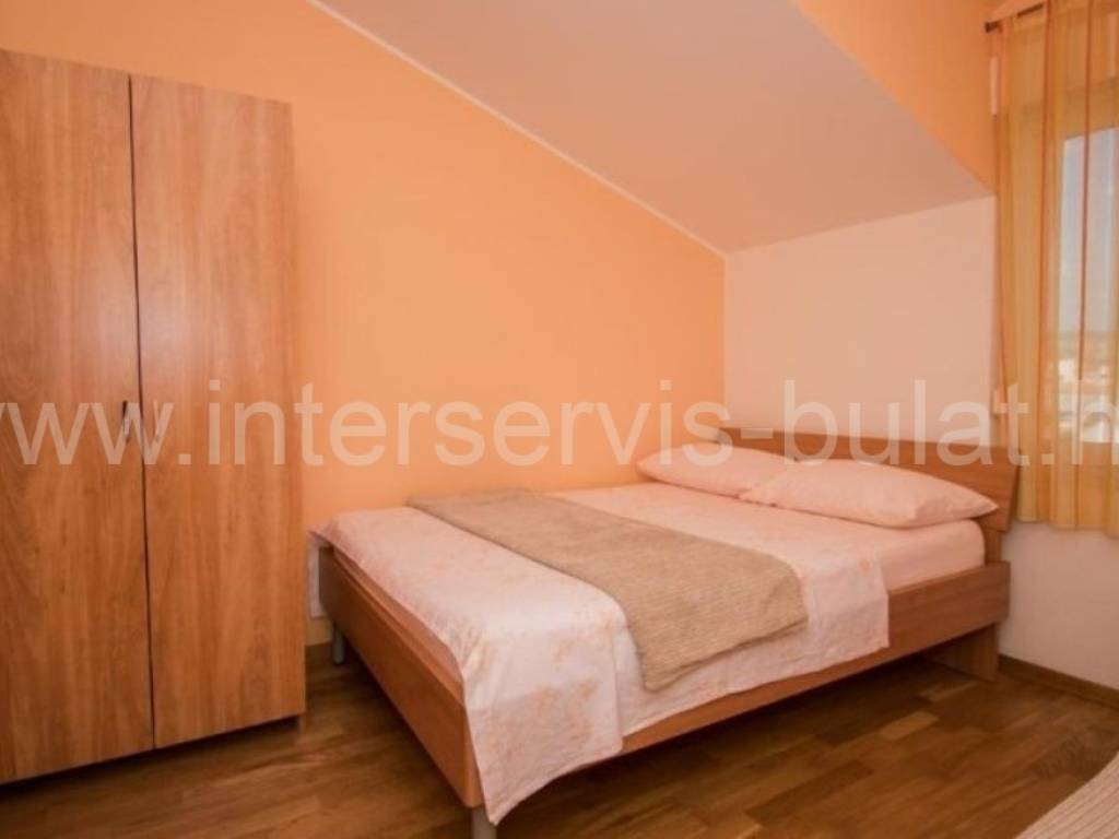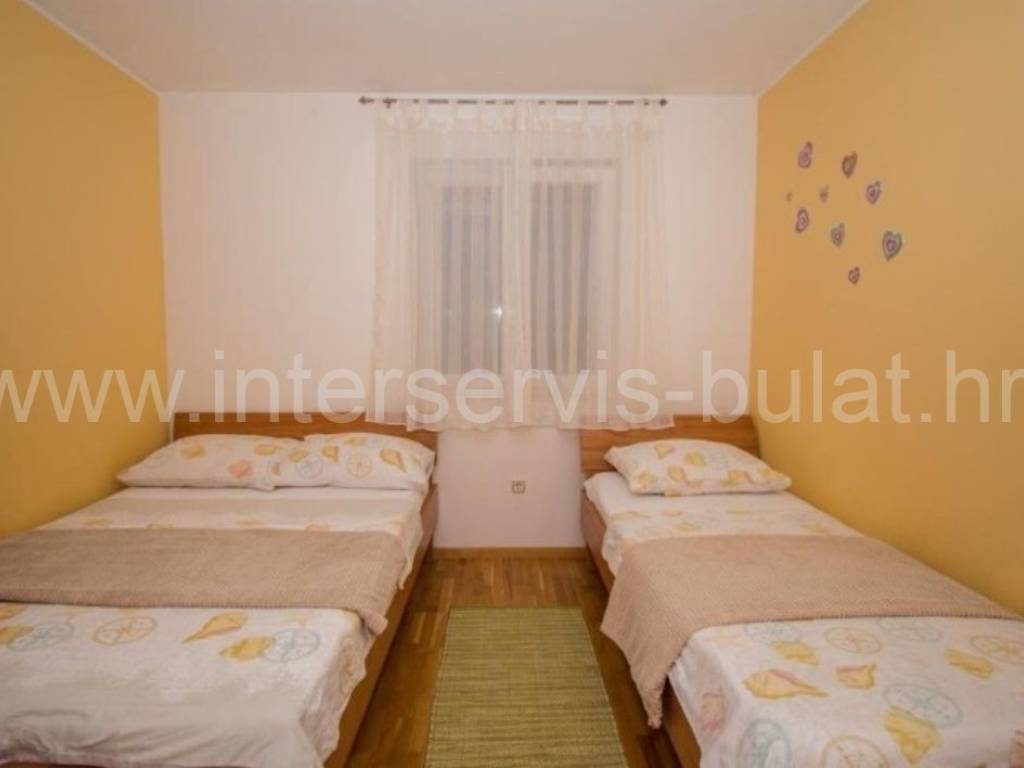 .::: Furnished apartment house near the sea :::. Semi-detached house located at the coast in Rogoznica, in the third row from the beach, in a peaceful settlement. The house has 219sqm living area and a plot of 273sqm. It was built in 2010 and is fully decorated, furnished and habitable. On the ground floor there is a one bedroom apartment of 38sqm with own garden. On the other floors there are each two bedroom apartments of 61sqm living area with nice terraces and stunning sea view. The house has several parking places and a garden. Especially good location only 80m to the beach.