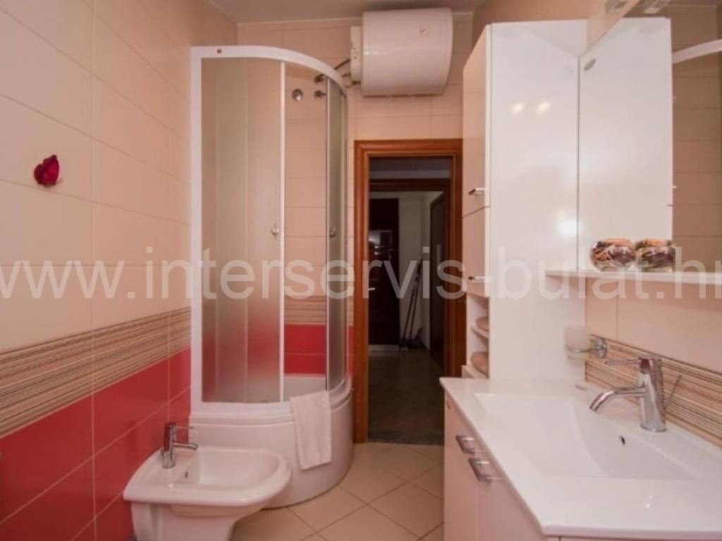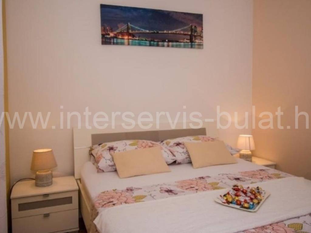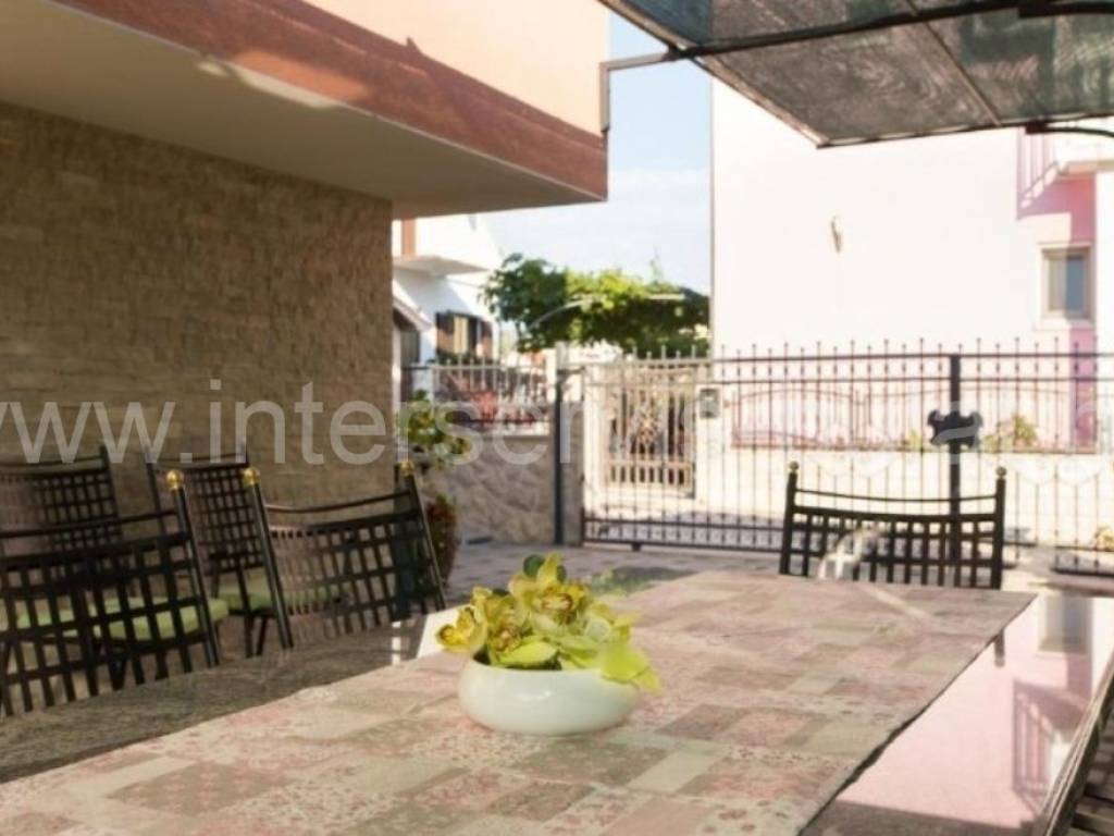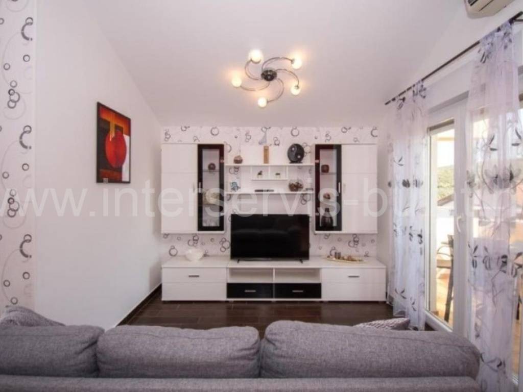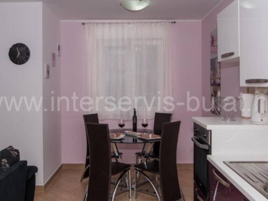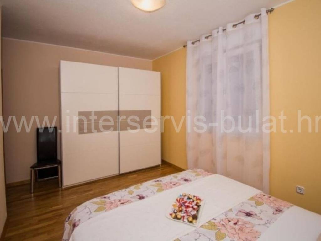 .::: Furnished apartment house near the sea :::. Semi-detached house located at the coast in Rogoznica, in the third row from the beach, in a peaceful settlement. The house has 219sqm living area and a plot of 273sqm. It was built in 2010 and is fully decorated, furnished and habitable. On the ground floor there is a one bedroom apartment of 38sqm with own garden. On the other floors there are each two bedroom apartments of 61sqm living area with nice terraces and stunning sea view. The house has several parking places and a garden. Especially good location only 80m to the beach.