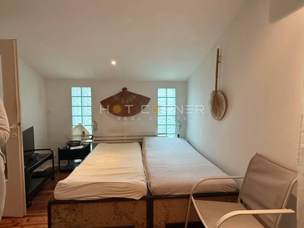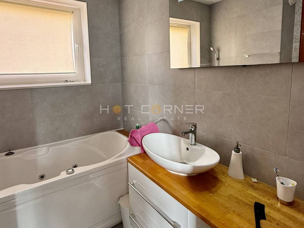 The house has a floor area of 123 m2 and is situated on a 432 m2 plot, spread over two levels: ground floor and first floor. On the ground floor there is a spacious living room with kitchen, bathroom, covered and uncovered terrace, as well as a separate studio apartment with its own entrance, separate bedroom, bathroom and terrace.