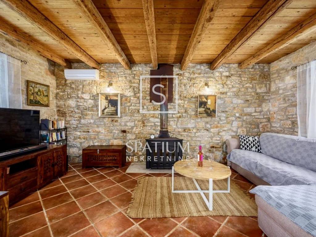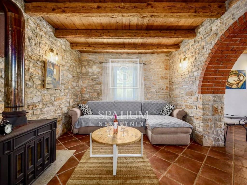 SV. LOVREČ – SURROUNDINGS, we offer an authentic Istrian stone house with a swimming pool, ideal for a pleasant year-round stay or as an investment for tourist rental. It is located on a spacious garden of 998 m2, while the house itself has a total of 110 m2 of usable living space.