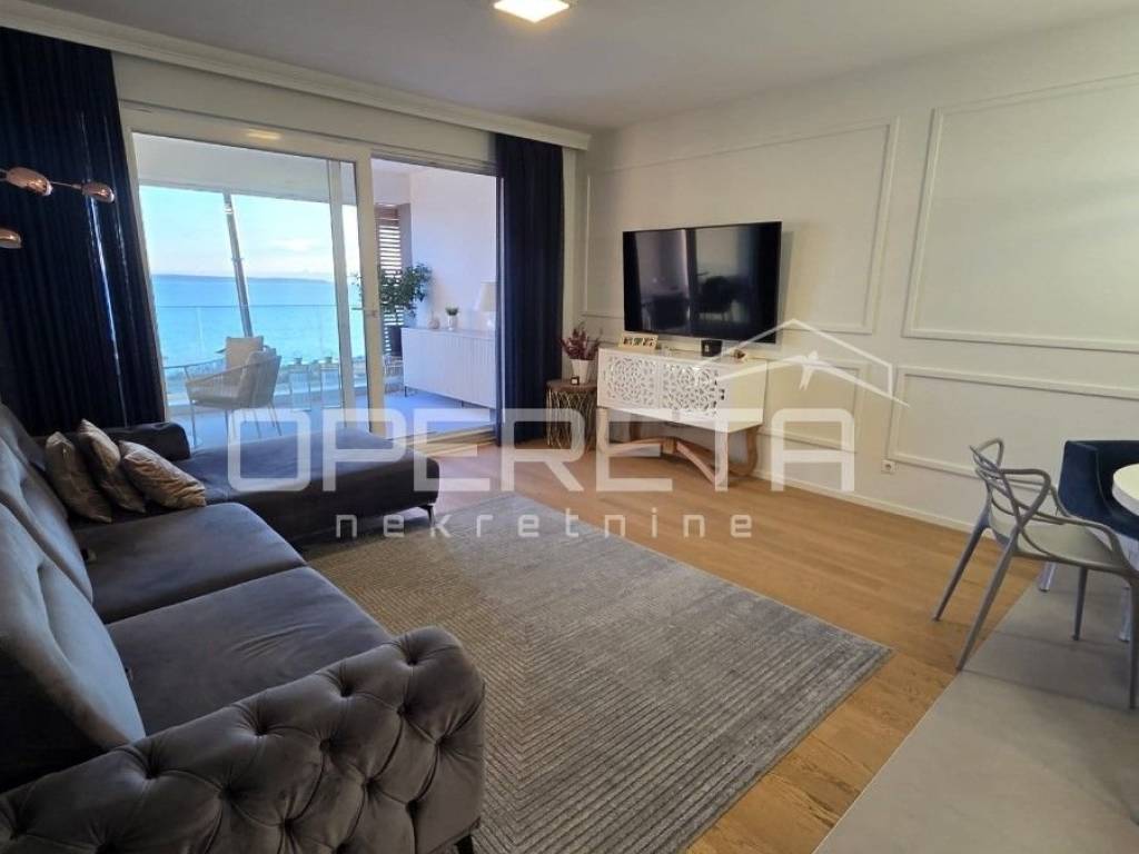 In the prestigious area of Žnjan, within an elegant seaside villa, a top-class three-bedroom apartment is situated, offering an exceptional standard of living with a permanent sea view. The apartment is located on the fourth floor of a building with a total of five floors and, thanks to its position and orientation, provides abundant natural light, privacy, and a sense of complete comfort.