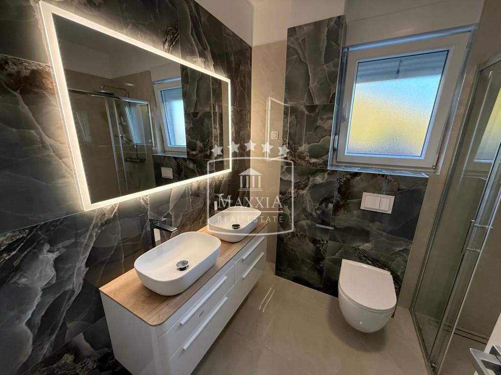 The apartment consists of: - spacious open space area (kitchen + living room), - two bedrooms with an open view of the mountains and the sea, - large storage room, - bathroom with toilet, - guest toilet.