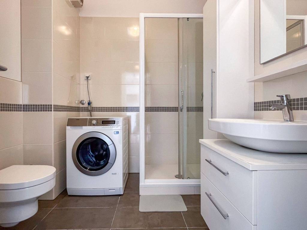 Stan je stambene površine 58,27 m2, a sastoji se od ulaznog hodnika, svjetlog dnevnog boravka s lijepim velikim prozorima, potpuno opremljene kuhinje i blagovaonice, dvije kupaonice (jedna s tuš kabinom, jedna s kadom, a obje imaju svoj WC) te dvije spavaće sobe od kojih je jedna namještena kao ured, ali se može i prenamijeniti u spavaću sobu - potpuno prema želji najmoprimaca!