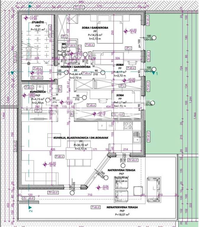 This apartment in the basement of a modern new building on Čiovo is located in a quiet and pleasant part of the island and is an excellent choice for families, couples or investors looking for a spacious property with large outdoor areas suitable for everyday life, vacation or tourist rental. The total net area of the apartment is 88.1 m², and consists of an entrance hall with a wardrobe, three bedrooms, one of which has its own wardrobe, a bathroom, an additional toilet, and a spacious living room with a kitchen and dining area of 30.72 m², which forms the central part of the apartment. From the living area, you exit to a covered terrace of 15.9 m² and an additional uncovered terrace of 18.07 m², which extend the living area and allow for a pleasant stay outdoors, socializing or decorating according to your own wishes. The apartment is equipped with underfloor heating, electric shutters and security doors, and each apartment has two parking spaces, which further contributes to the comfort of everyday use. The property is located on Čiovo, in a part of the island that offers a good balance between peace and proximity to all important amenities. In the vicinity, there are shops, restaurants, seaside promenades and various services needed for everyday life, while the sea and beaches can be reached in just a few minutes. The location is suitable for both permanent residence and seasonal use because it allows easy connection with the historic center of Trogir, quick access to Split Airport and good traffic connections with the city of Split itself and the rest of the coast. For more information or to arrange a viewing, please feel free to contact us.
