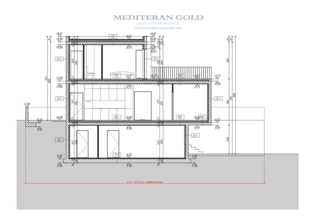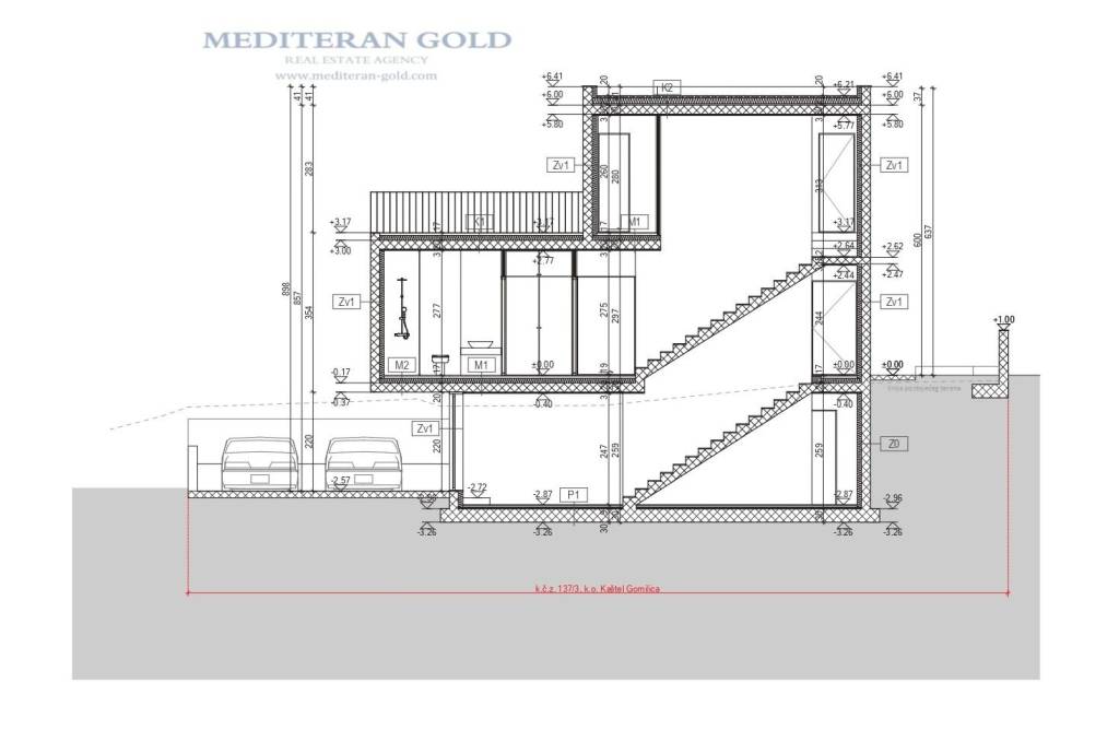 Kastel Gomilica, a house of 200m2 for sale, on two floors, under construction with a swimming pool, on a plot of 333m2. Located in an ideal location for family life or as an investment property. The building is in the construction phase, has all the necessary documentation, a quiet environment, close to all necessary amenities, 400m distance from the sea. A modern house with a comfortable layout, large terraces and a yard with parking spaces. A perfect opportunity for those who want the perfect home or as an investment.