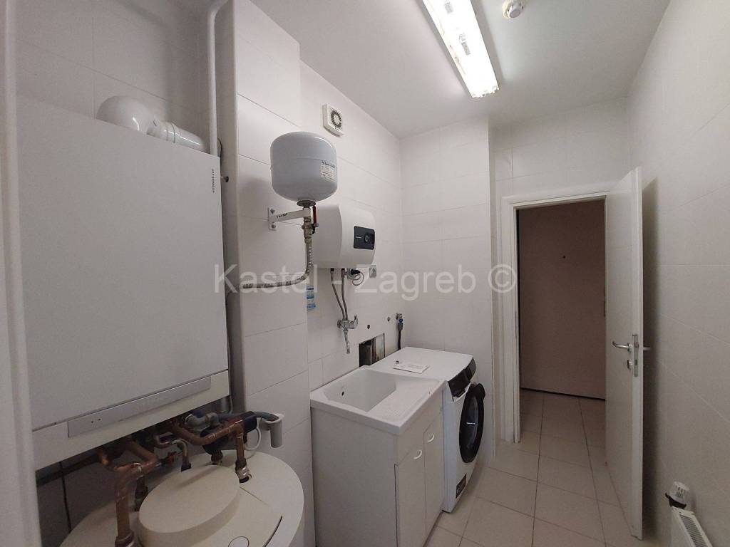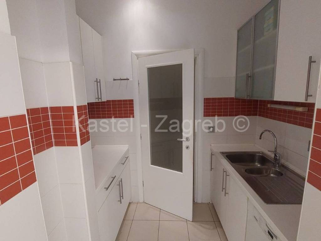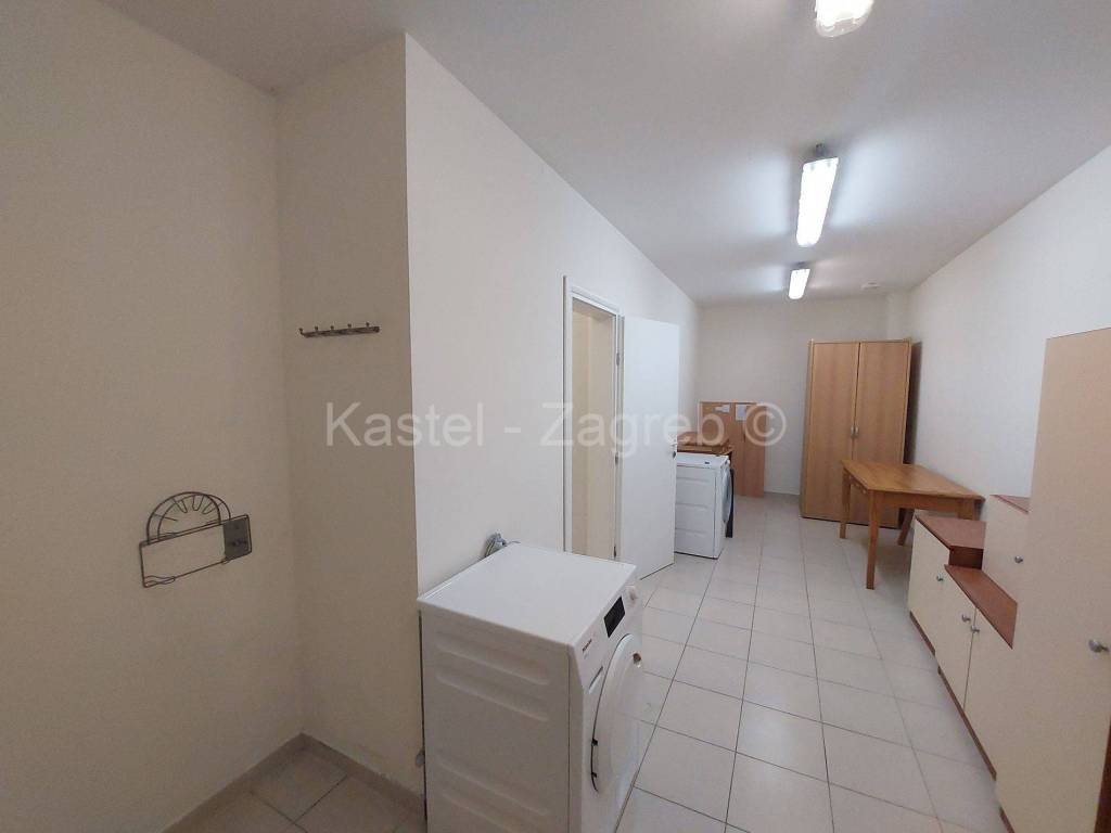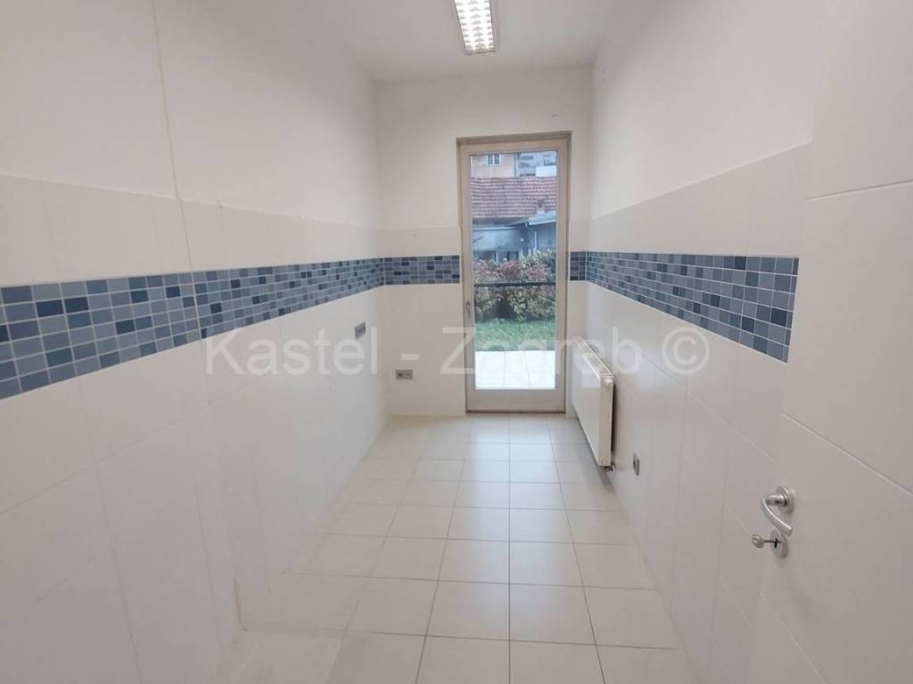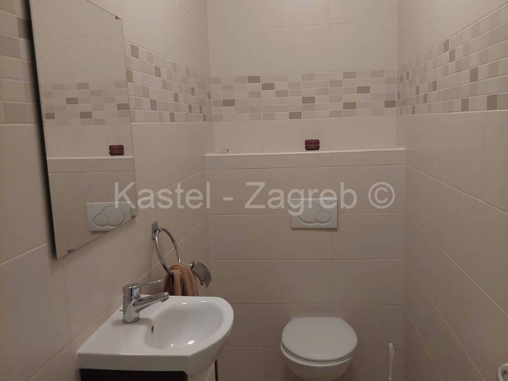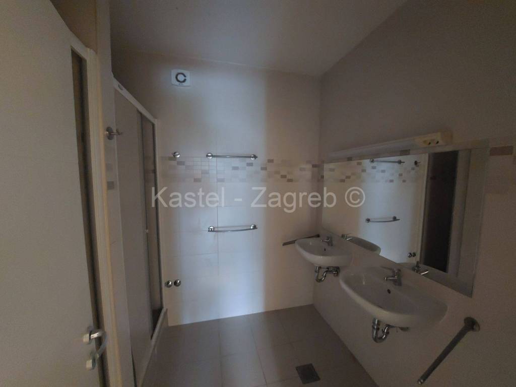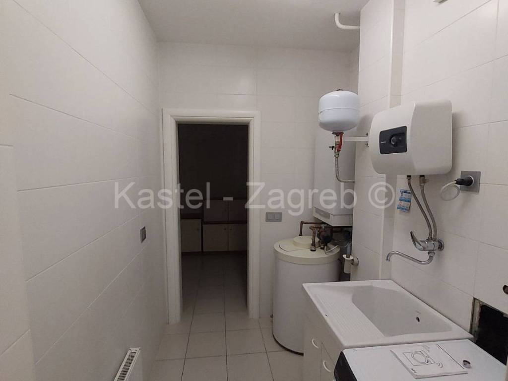 Stan u novijoj zgradi na odličnoj lokaciji, 10 min hoda do Kvaternikovog trga. Zgrada povučena od glavne prometnice okružena zelenilom. U zgradi samo tri stana s ugrađenim dizalom. Stan se sastoji zatvorenog dijela 127 m2 kojeg čine dva hodnika, kupaonica, wc, dvije kuhinje i blagovanjem, kotlovnica s vešerajem, izba, tri sobe, dvije prostorije (2 x 20 m2 tehnički podrum nije upisan u ZK, moguća sauna, teretana). Stanu pripada terasa površine 31,62 m2, vrt 140 m2 i dva parkirna mjesta 30m2 ispred ulaza u zgradu. Sadašnji vlasnik originalni raspored dnevnog boravka prilagodio svojim potrebama knauf zidom, koji se lako ukloni.