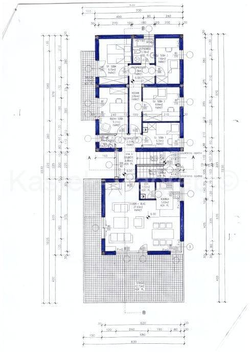 Dnevni boravak s integriranom ugrađenom kuhinjom, 5 spavaćih soba, terasa 42,73 m2 s jedinstvenim pogledom na grad i zelenu okolicu s mogućnošću dogradnje zimskog vrta, te balkon 6,96 m2, jacuzzi kupatilo s WC-om i poseban WC za goste.