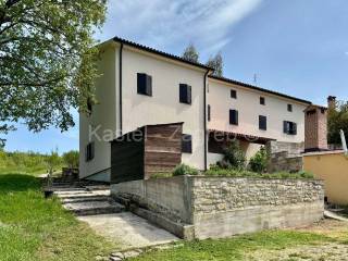 Dvojna kuća s četiri stambene jedinice u blizini Grožnjana, površine 230m2. Smještena je na parceli površine 774m2. U prizemlju se nalazi stan od 60m2 s natkrivenom terasom te manji od 32m2. Na katu se nalazi stan od 62m2 s galerijom od 20m2 te manji stan od 32m2 s galerijom od 14m2. Oba stana imaju terase. Grijanje je na klima uređaje, donji veći stan ima peć na drva, a svi stanovi se spojeni na dimnjak te se mogu opremiti pećima. Kuća ima građevinsku i uporabnu dozvolu te priključke na struju, vodu i septičku jamu s biopročišćivačem. Kuća je građena iz temelja 2020. godine na mjestu stare nekretnine ali u istarskom stilu. Solarni kolektori osiguravaju toplu vodu. Kuća je na lijepoj lokaciji, uz zelenu zonu, na 15 min vožnje do obale i u blizini granice sa Slovenijom. Energetski razred A+. Agencijska provizija: 1% + pdv Kontakt: Andrea 091 234 9875, andrea@kastel.hr