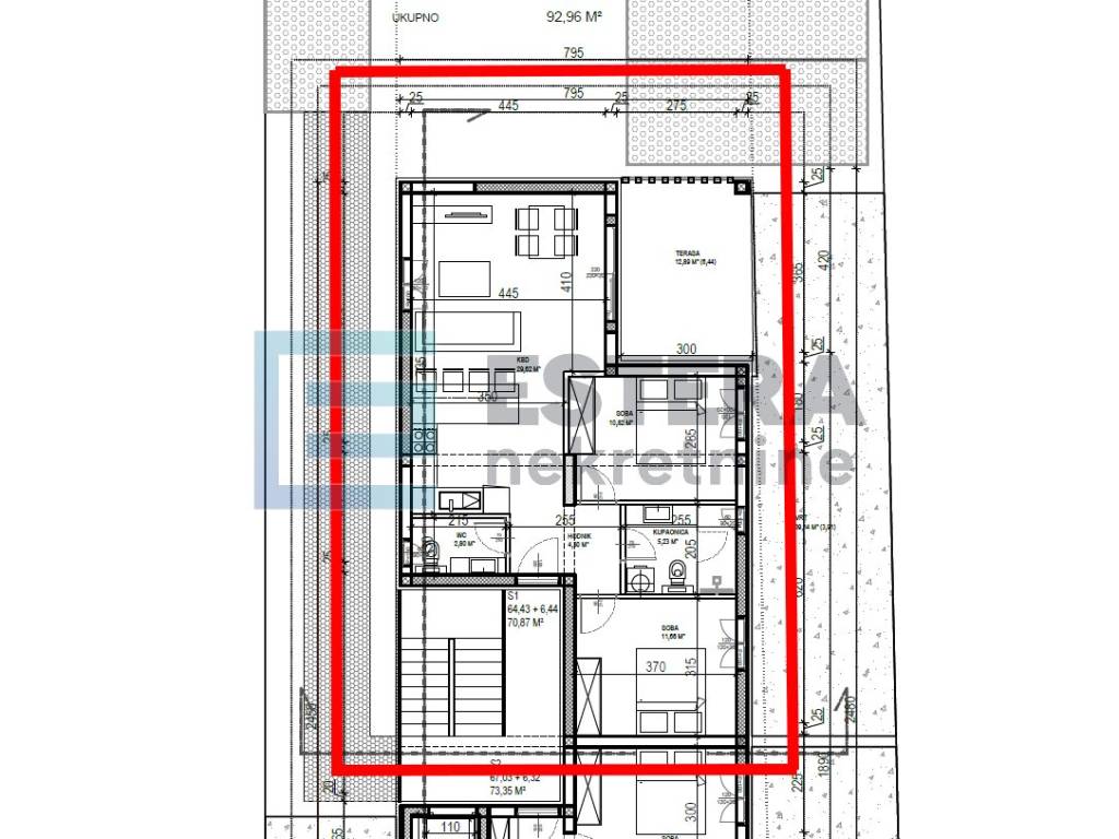 - Zatvoreni prostor: 64,43 m2