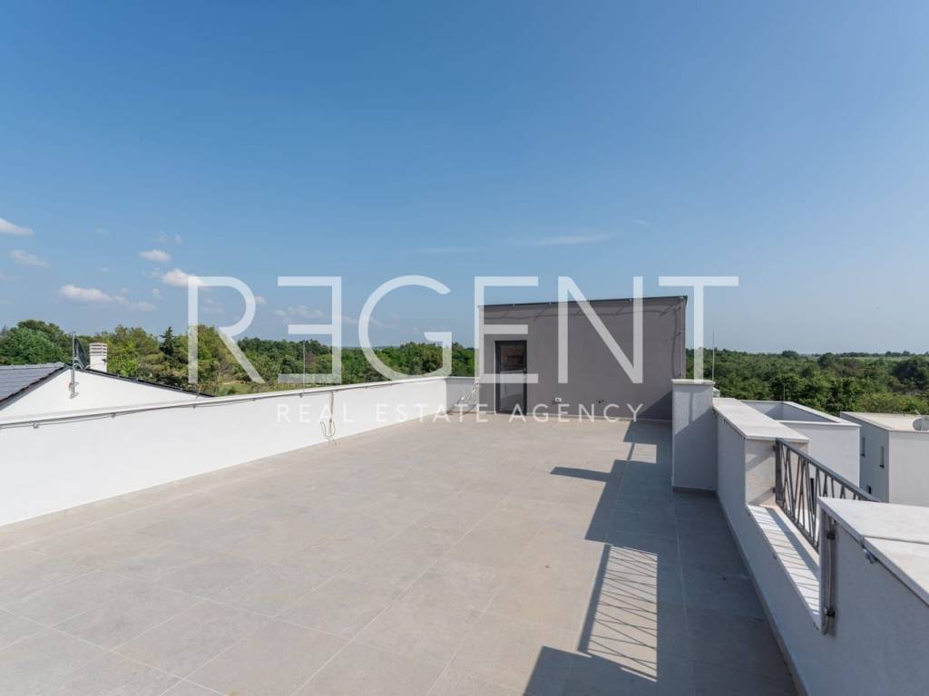 This four-bedroom apartment is located in an excellent location in Vabriga. The apartment is in a modern new building and is ideal for families, couples, or investors looking for a quality property near the sea. The apartment has a total net area of 79 m², and consists of three bedrooms, a spacious living room with a kitchen and dining area that opens onto a balcony, a bathroom, a separate toilet, a hallway, and two storage rooms. It is equipped with air conditioning, quality PVC joinery, and ceramic floor coverings with underfloor heating. Thanks to its southeast orientation, all rooms have plenty of natural light. An impressive roof terrace of even 86 m² gives special value to this property, providing a panoramic view of the surrounding nature and offering exceptional potential for outdoor enjoyment. Thanks to its size, the terrace can be easily transformed into a private oasis — ideal for sunbathing, socializing, barbecuing, installing a jacuzzi or an outdoor kitchen. Such an outdoor space is a rarity on the market and makes this property extremely attractive for living, vacationing, or investment. The property is located in a quiet and well-maintained part of Vabriga, with excellent connectivity and proximity to all important amenities – schools, shops, restaurants, parks, and beaches are just a few minutes' drive away. The building is completed, and immediate move-in is possible. Payment is possible by agreement, with flexible terms. For more information or to arrange a viewing, feel free to contact us.