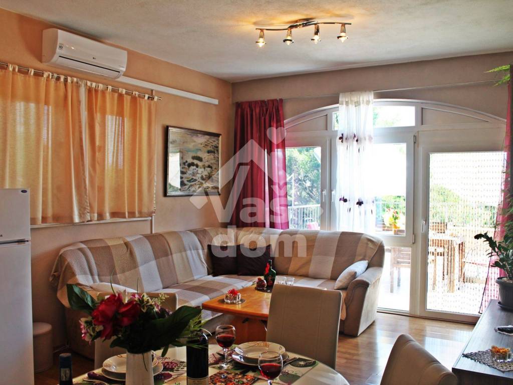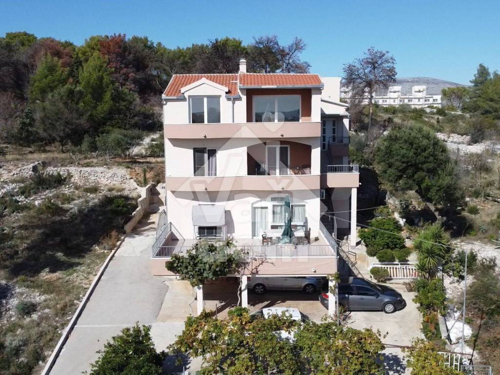 On Ciovo in Gornji County, a multi-apartment building with four apartments with separate entrances is sold in a quiet location in a dead end. The building is surrounded by greenery, and the sea is only 400 m away, public transport is 200 m away. The historic town of Trogir is 5 km away, Split Airport 8.5 km and the exit to the Prgomet Highway 21 km.