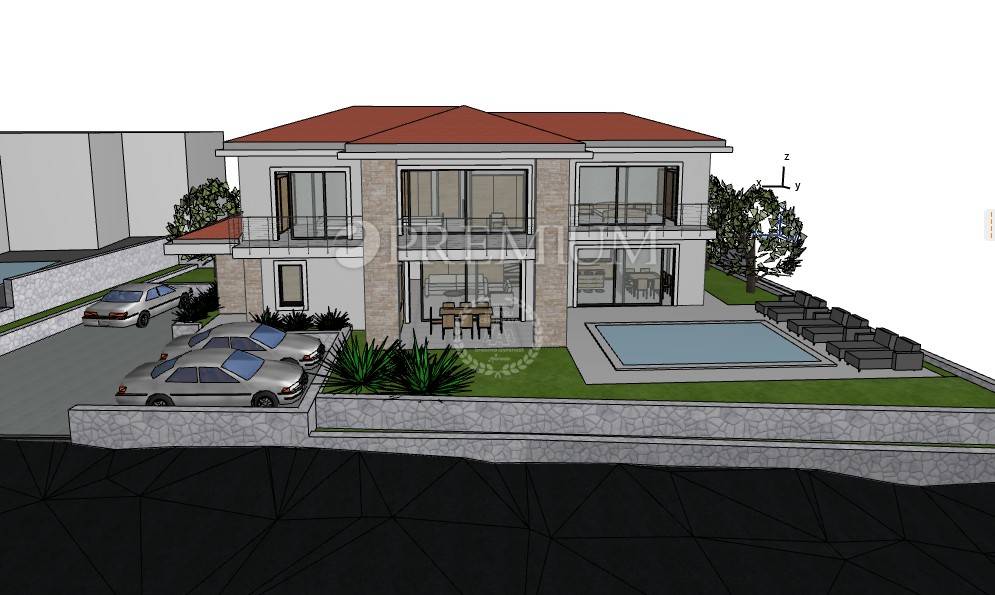 Brzac – building land for sale with a total area of 575 m², regular shape, with a building permit and sea view. Quiet and attractive location, ideal for building a family home, holiday home or investment property.