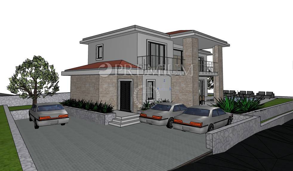 The basement is planned to include a hallway, WC, two storage rooms, a technical room, laundry room and a tavern. The ground floor is planned to consist of an entrance hall, staircase, storage room, WC, bedroom with en-suite bathroom, living room, and kitchen with dining area with access to a covered terrace. The first floor is planned to include a hallway and three bedrooms, each with its own bathroom and access to a terrace offering a beautiful sea view.