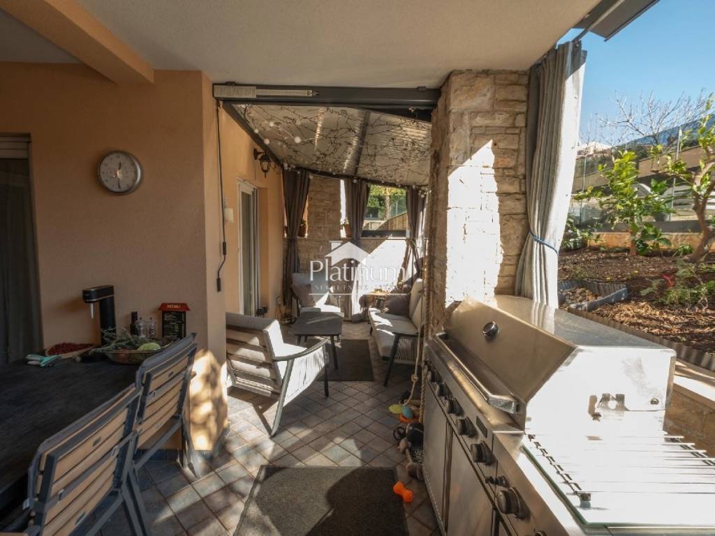 Prodaje se stan u Medulinu koji se sastoji od dvije spavaće sobe, dnevnog boravka s kuhinjom i blagovaonom, kupaone, te natkrivene terase s izlazom u ograđeni vrt. Stanu pripada parkirno mjesto. U sklopu objekta je zajednički bazen i uređeno sunčalište. Nekretnina se nalazi na atraktivnoj lokaciji, svega 200 m od plaže.