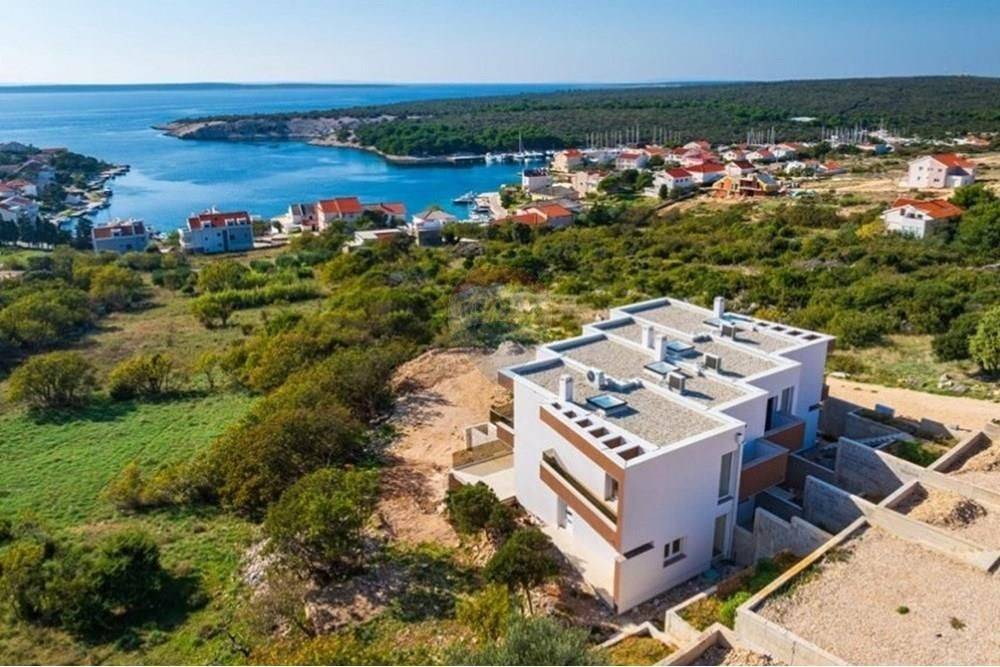 A two-story apartment in the nature of a terraced house is for sale with a total area of 94.64 m2 in Šimuni on the island of Pag.