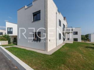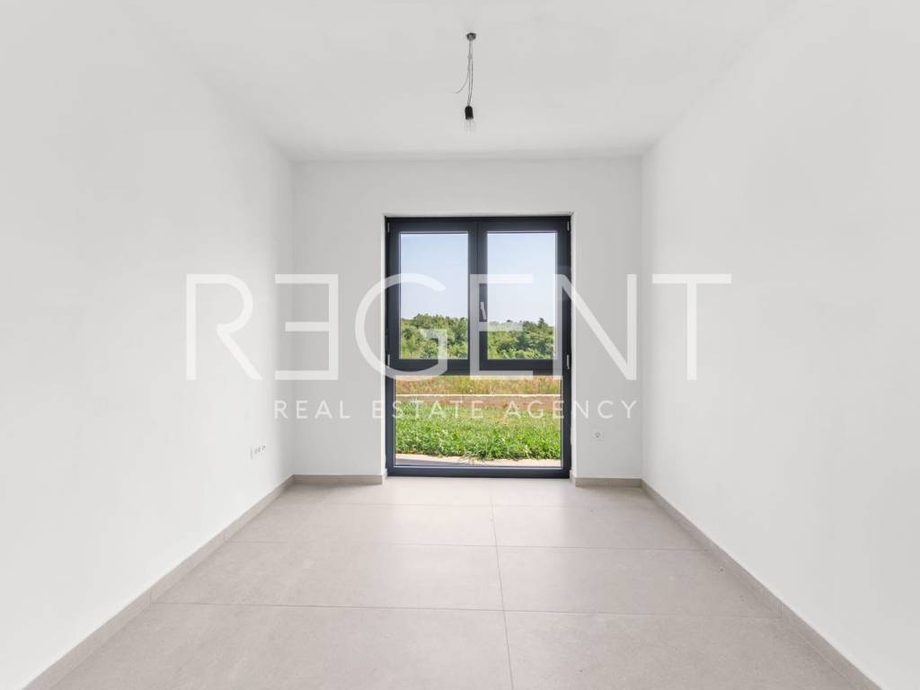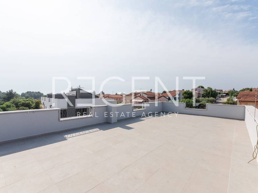 This four-bedroom apartment is located in an excellent location in Vabriga. The apartment is in a modern new building and is ideal for families, couples, or investors looking for a quality property near the sea. The apartment has a total net area of 79 m², and consists of three bedrooms, a spacious living room with kitchen and dining area that opens onto a balcony, a bathroom, a separate WC, a hallway, and two storage rooms. It is equipped with air conditioning, quality PVC joinery, and ceramic floor coverings with underfloor heating. Thanks to its southwest orientation, all rooms have plenty of natural light. A special value is given by the roof terrace of 84.70 m² which offers a beautiful view of nature. The property is located in a quiet and well-maintained part of Vabriga, with excellent connections and proximity to all important amenities - schools, shops, restaurants, parks, and beaches are only a few minutes' drive away. The building is completed, and move-in is possible immediately. Payment is possible by arrangement, with flexible conditions. For more information or to arrange a viewing, feel free to contact us