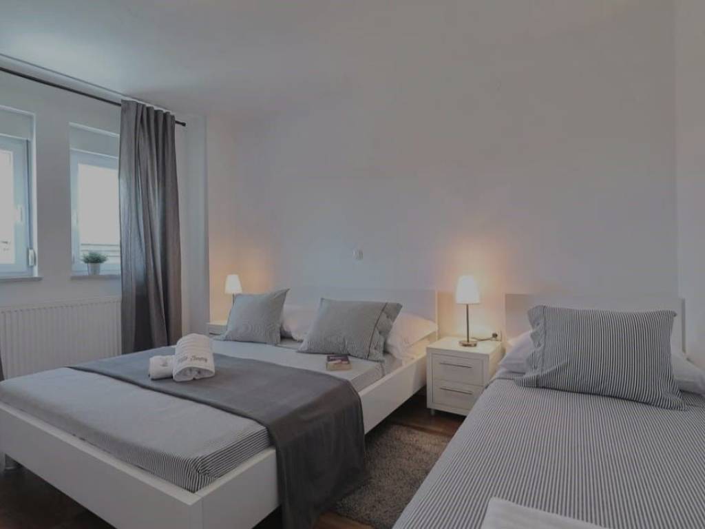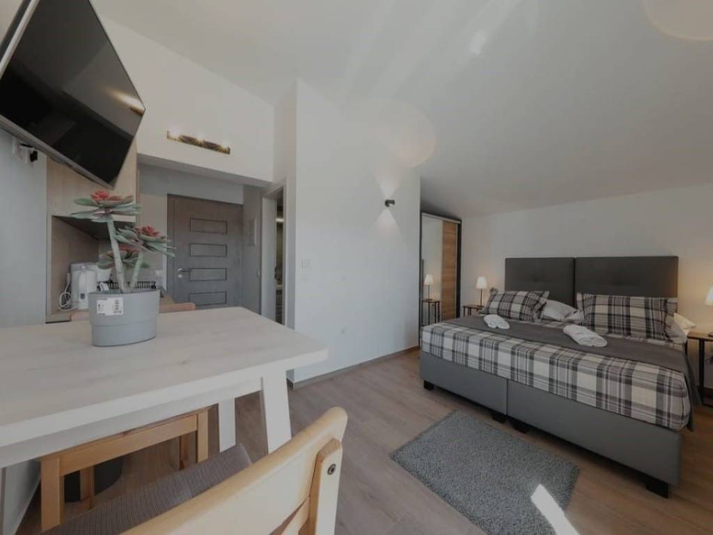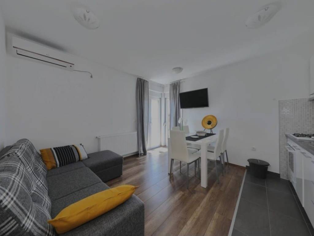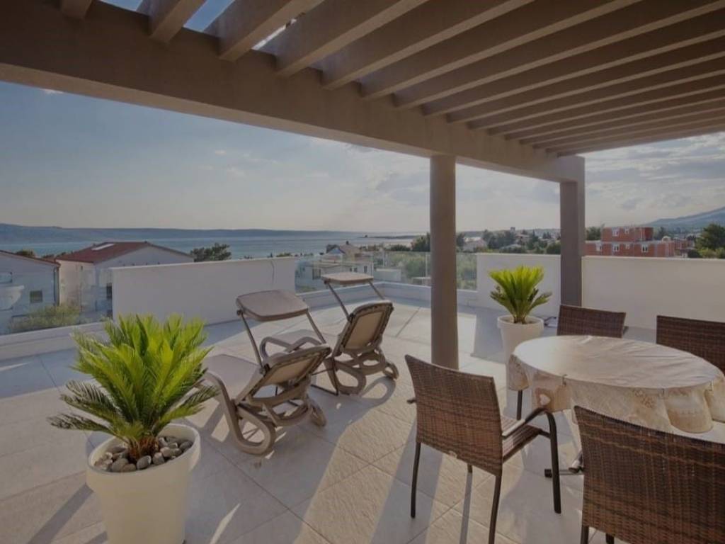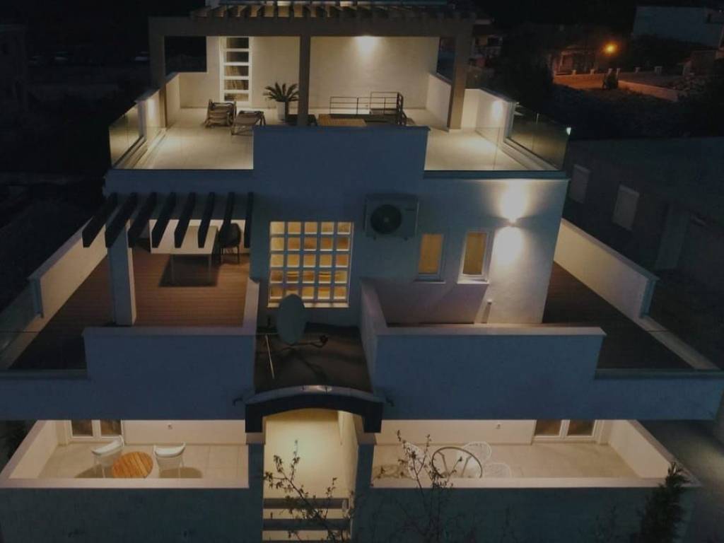 Na prvom katu nalazi se prostran dvosobni apartman u kojem svaka prostorija ima izlaz na terasu s pogledom na more.
