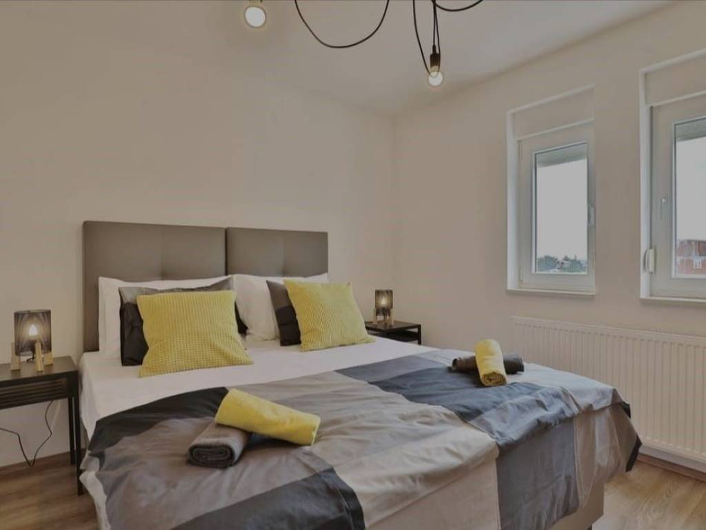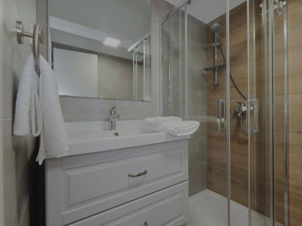 Prizemlje se sastoji od dva apartmana, od kojih jedan sadrži dnevnu sobu s kuhinjom, kupaonicu i dvije spavaće sobe, a drugi dnevnu sobu s kuhinjom, kupaonicu i jednu sobu.