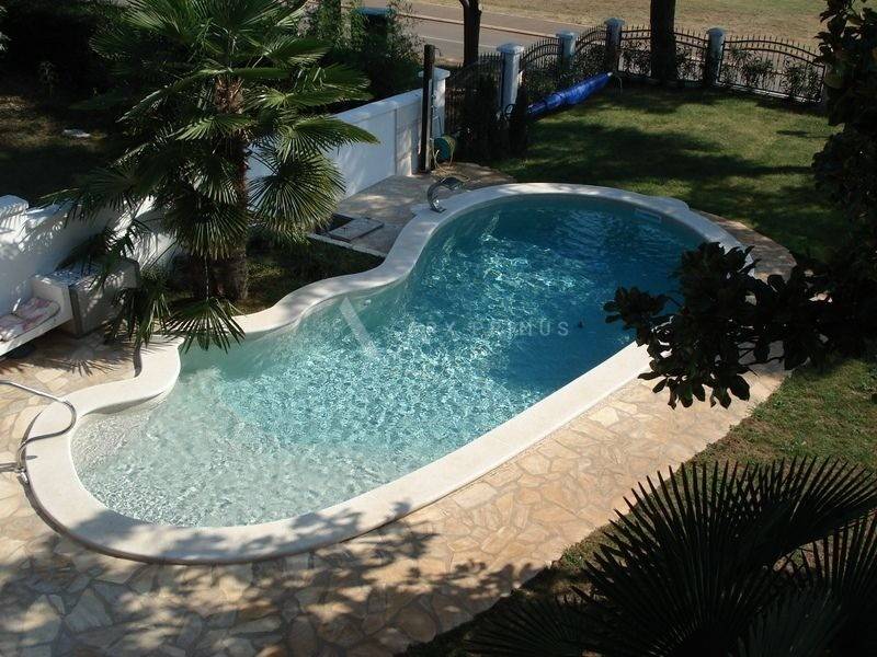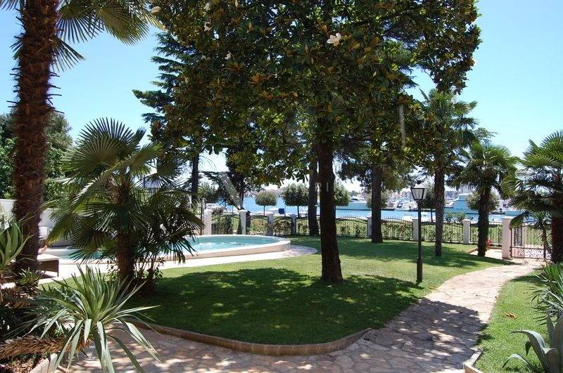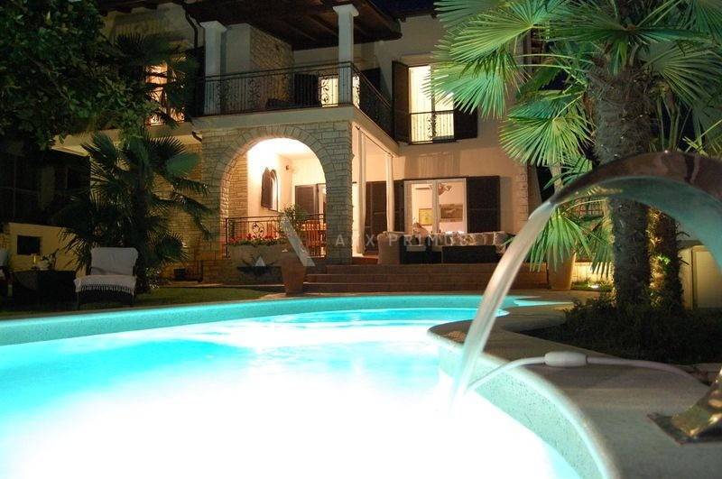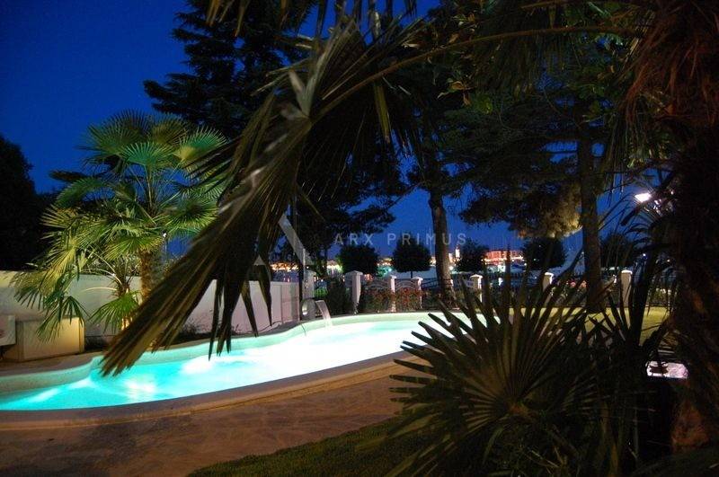 Luxurious villa with pool at an elite location in Umag Istria, first row to the sea, located in a beautiful Mediterranean garden with open sea view.