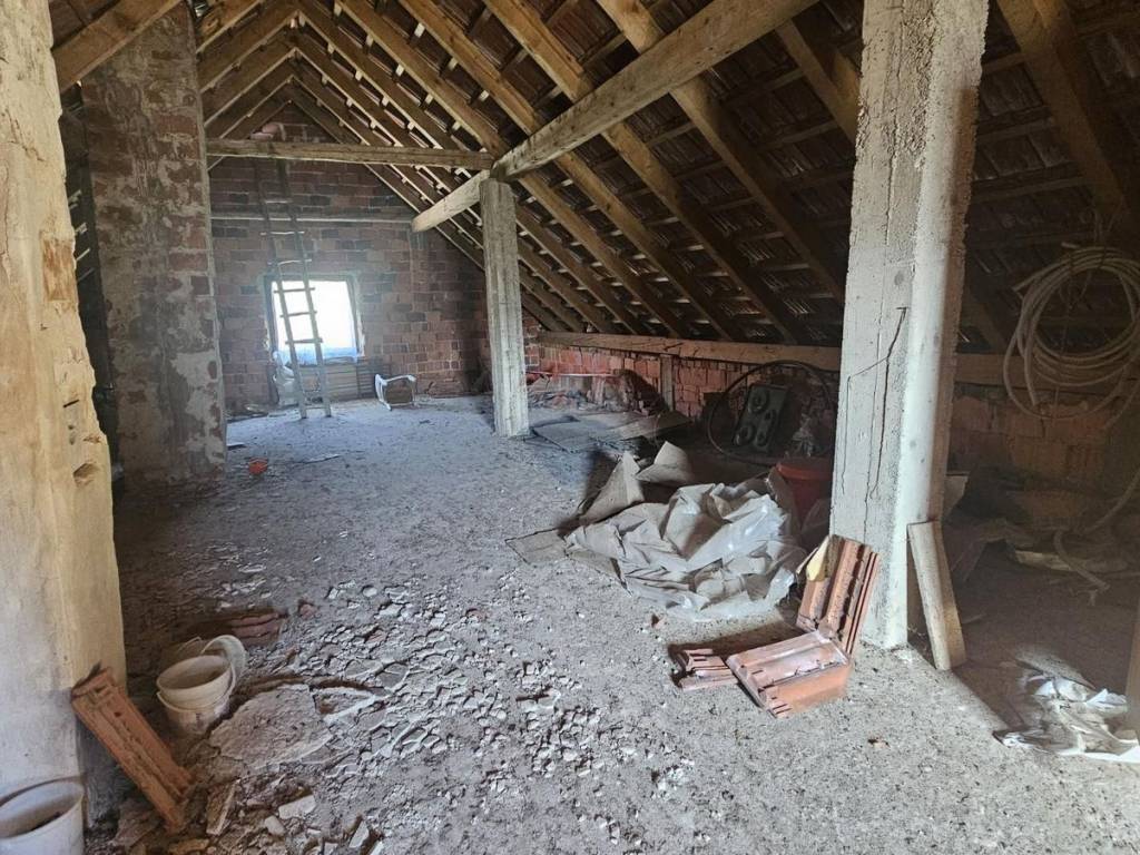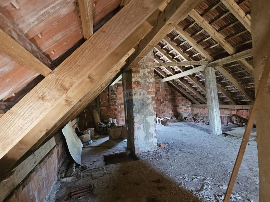 The house was renovated in the 1980s and features a reinforced concrete floor slab between levels and in the attic. It is solidly built, well maintained, and preserved over the years. It was arranged for use by two families. On the ground floor there is a large common room that served as a social space, and on each side there is a staircase leading to a separate entrance. Each unit has its own electricity and water meters.