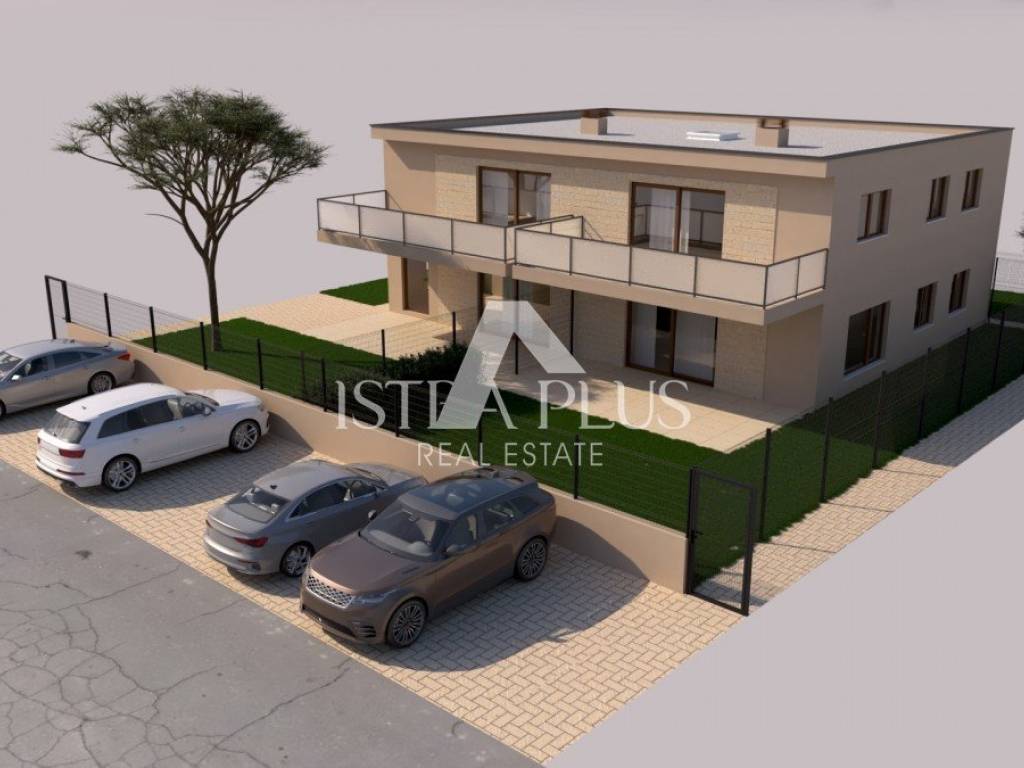In a quiet part of Poreč, 2 kilometers from the sea, a modern apartment in a new building is for sale, located on the first floor of a small residential building with a total of four residential units. The apartment consists of a spacious living room with kitchen and dining room, three bedrooms, two bathrooms and a hallway.
